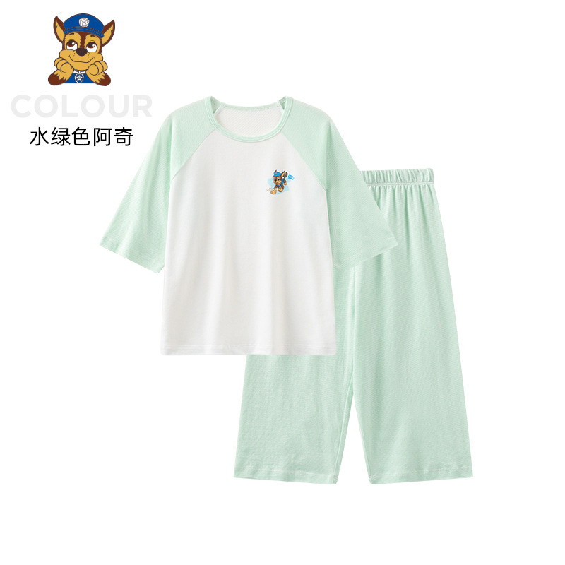 왕왕 팀 어린이 홈 의류 세트 봄 가을 얇은 소년 모달 여름 잠옷 걸스 세트 2 피스 세트스토어 가기