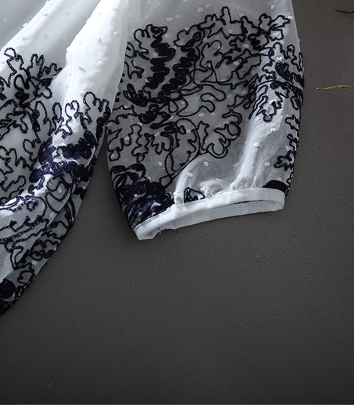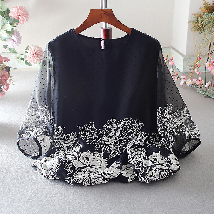 여름 복고풍 패션 예술적 기질 슬림 쉬폰 느슨한 편안한 비 다림질 드레이핑 자수 셔츠 탑 에이전트스토어 가기