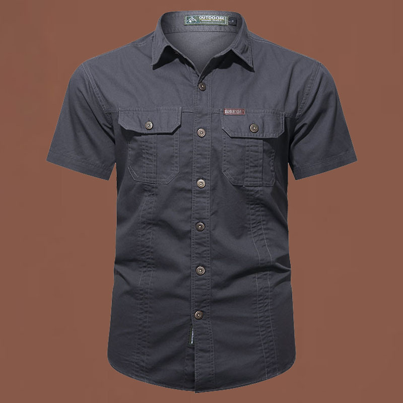 여름용 크로스보더 셔츠, 작업복 반팔 면 남성 작업복, 면 작업복 셔츠, 야외용 루즈핏 남성 셔츠, 다림질 필요 없음스토어 가기