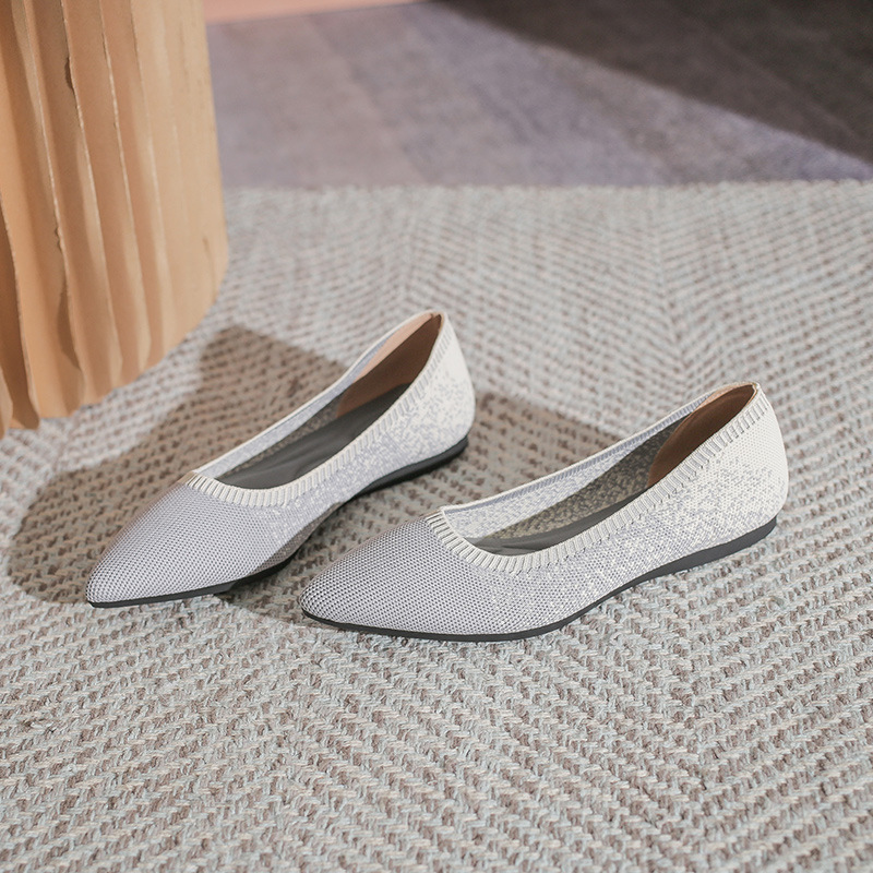여성을위한 일본 공주 신발 2024 새로운 다목적 얕은 입 뾰족한 니트 신발 세련된 통기성 플랫 플라이 짠 신발