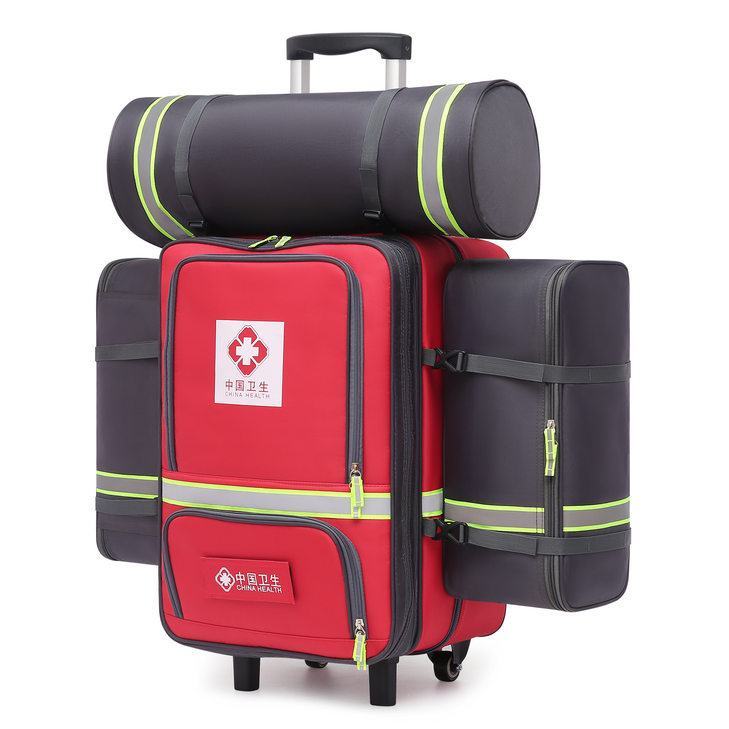 트롤리 케이스, 중국 의료 팀 개인 휴대 장비 배낭, 대용량 재난 구호 가방, 범용 휠, 경량스토어 가기