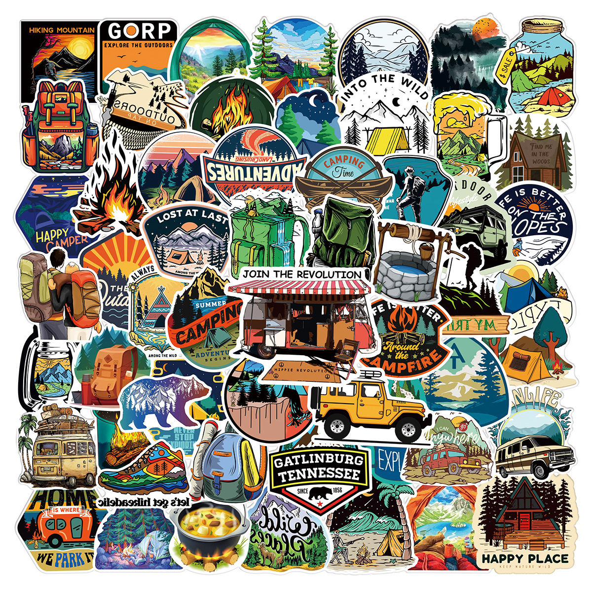 100 시트 야외 캠핑 스티커 텐트 비 반복 여행 가방 기타 자동차 컴퓨터 방수 PVC 스포츠 스티커스토어 가기