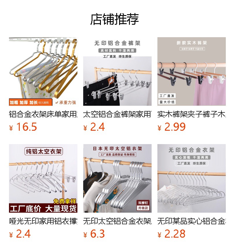 단단한 알루미늄 합금 걸이 공간을 인쇄하지 않음 대담한 원활한 알루미늄 의류 지원 홈 미끄럼 방지 옷 도매스토어 가기