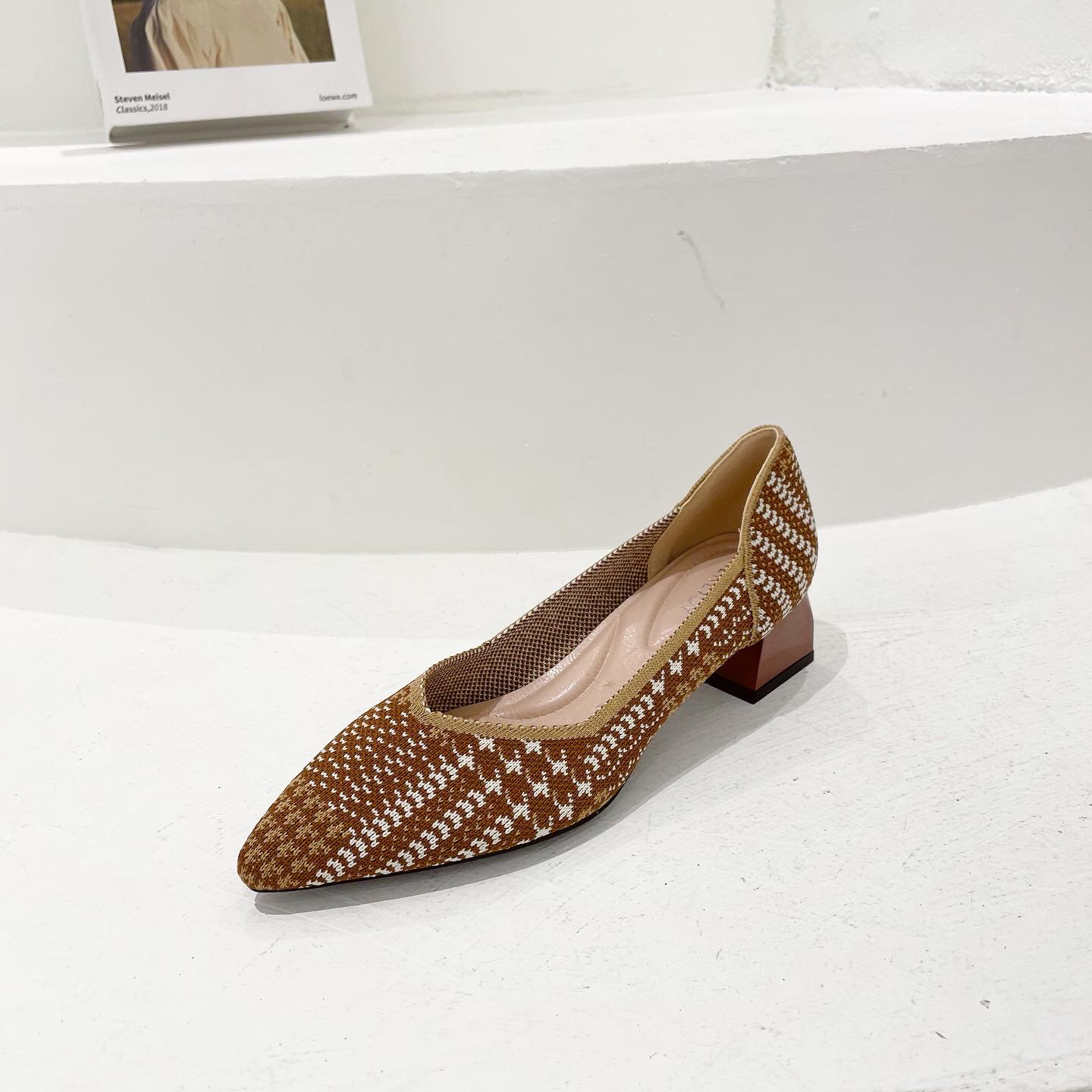 국경 간 대외 무역 짠 비행 니트 공주 신발 통기성 발 부드러운 바닥 얕은 입 두꺼운 굽 신발 여성 신발스토어 가기