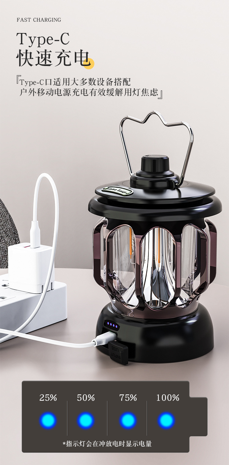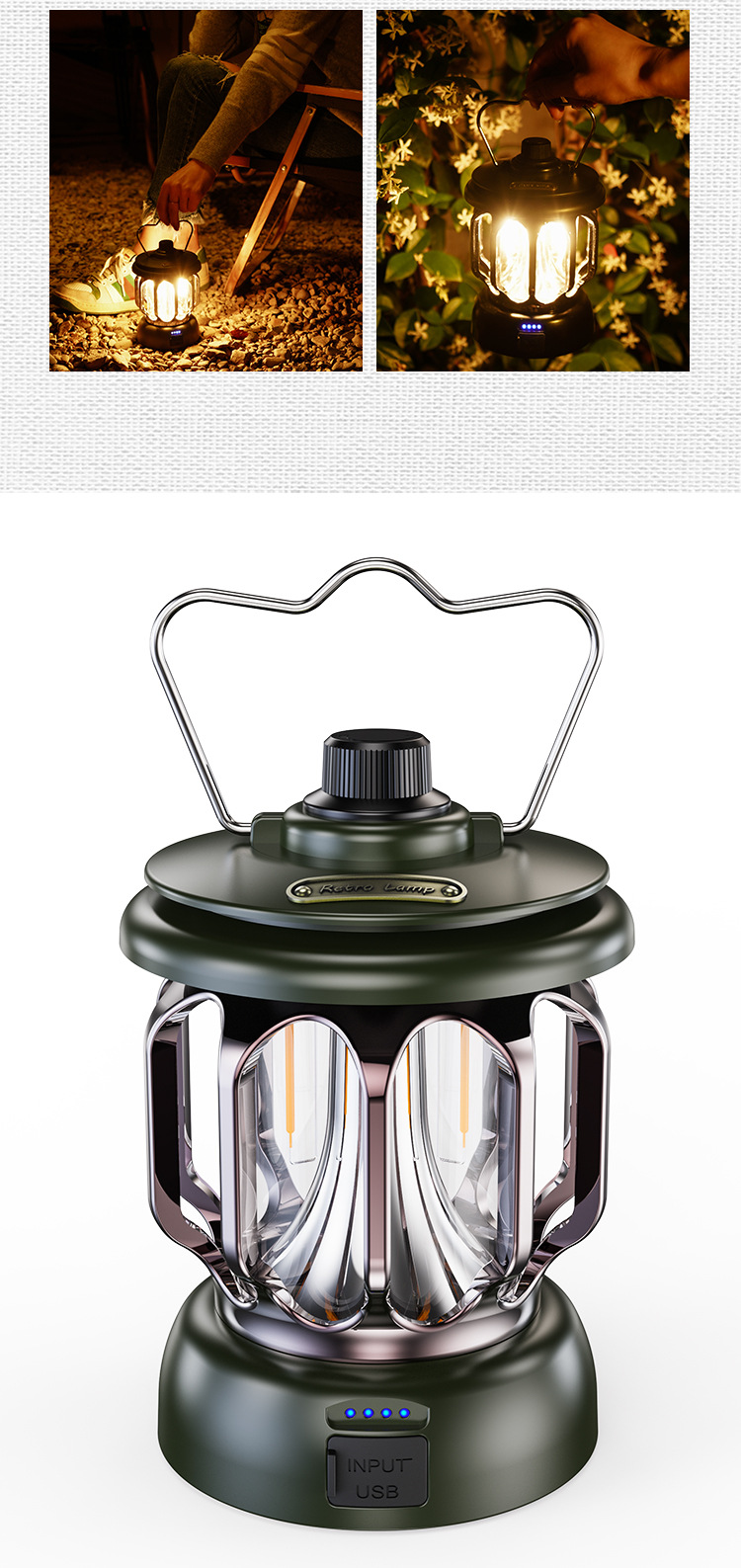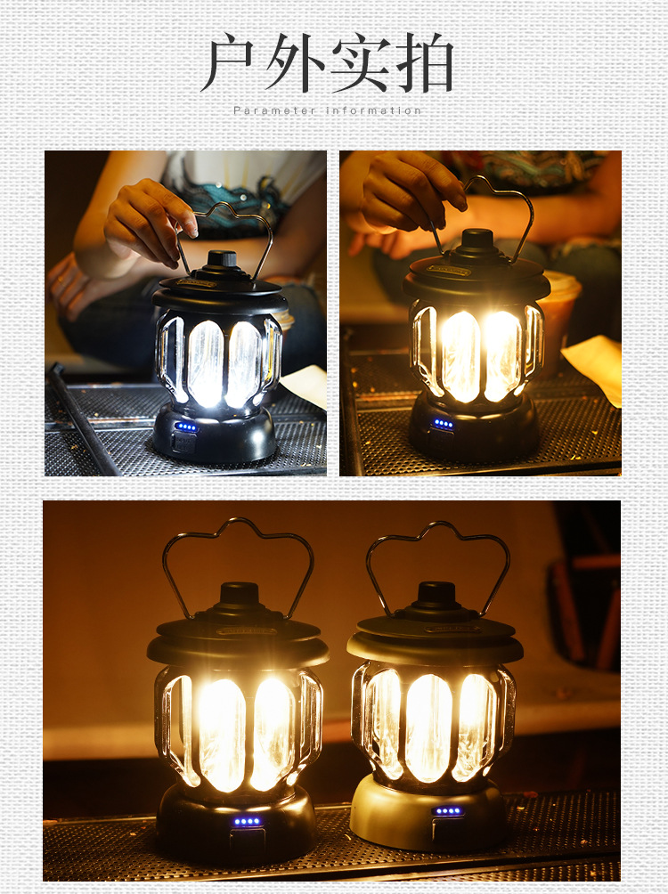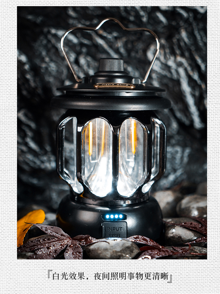 크로스 보더 야외 캠핑 조명 LED 복고풍 말 램프 휴대용 텐트 조명 편의 USB 충전식 캠핑 조명