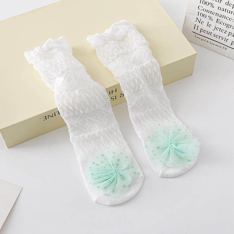2022 여름 메쉬 초박형 모기 방지 양말 미끄럼 방지 분배 아기 스타킹 면 아기 무릎 양말