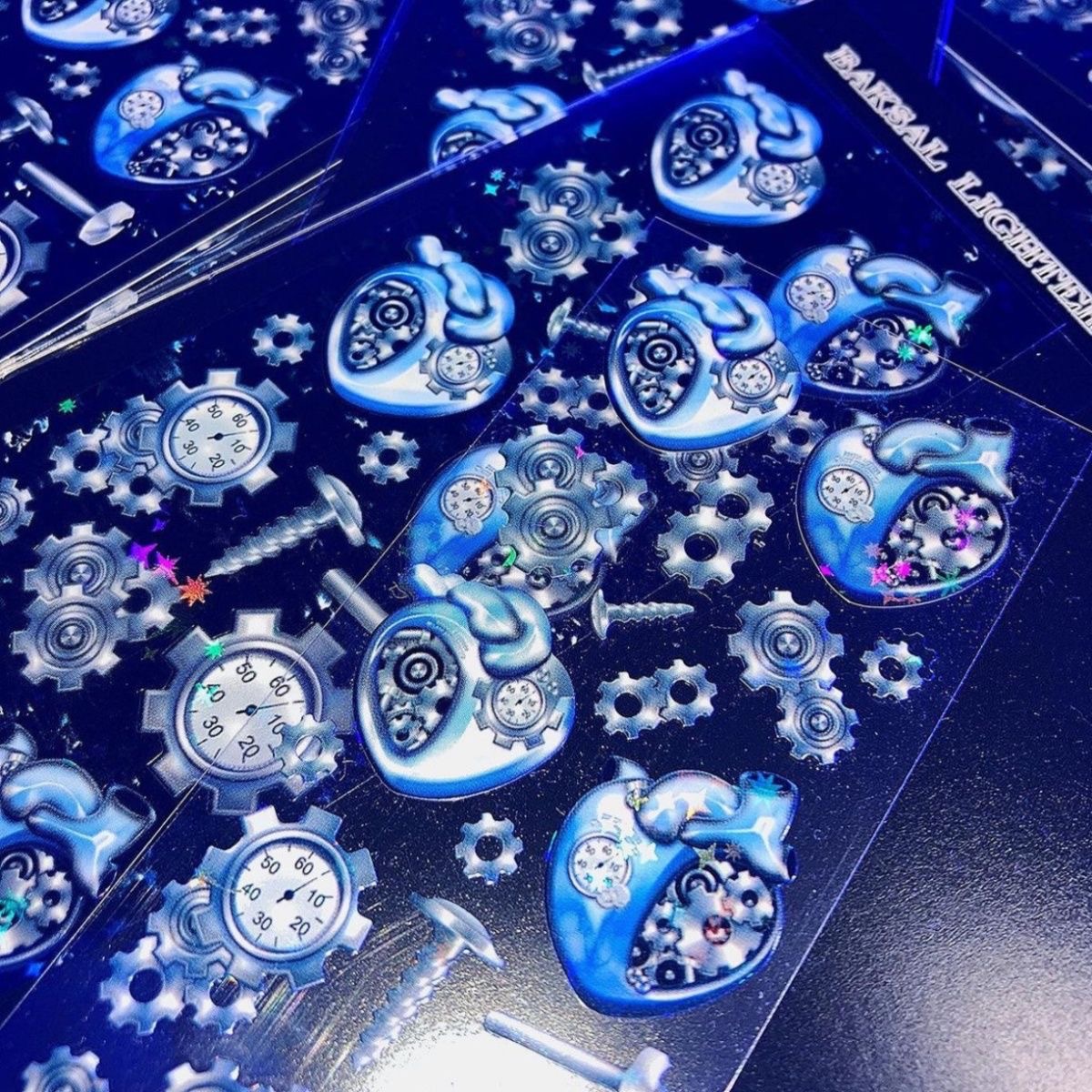 슈퍼 달콤하고 매운 스타일의 반짝이는 스티커 창조적 인 체인 구 카드 장식 DIY 소재 레이저 스티커