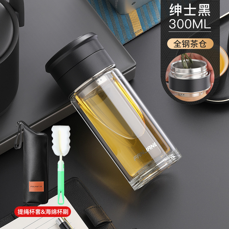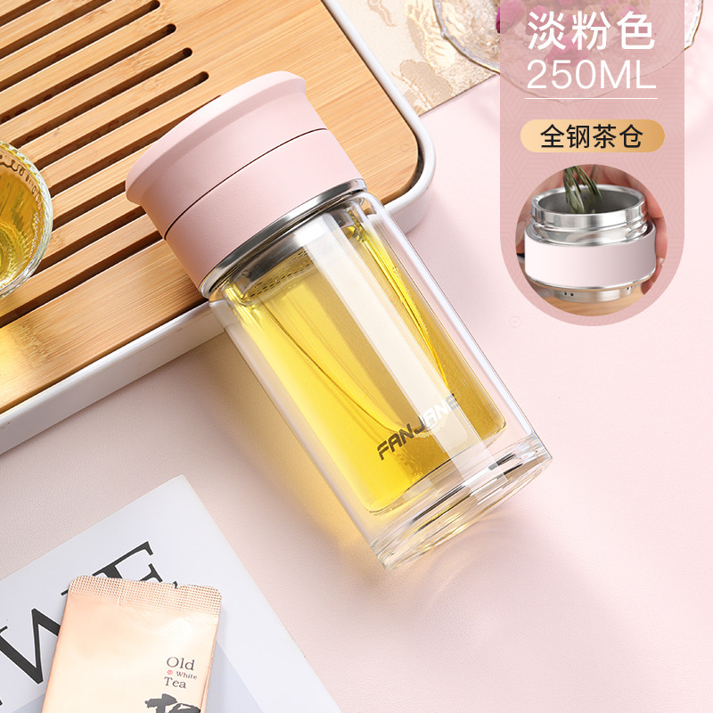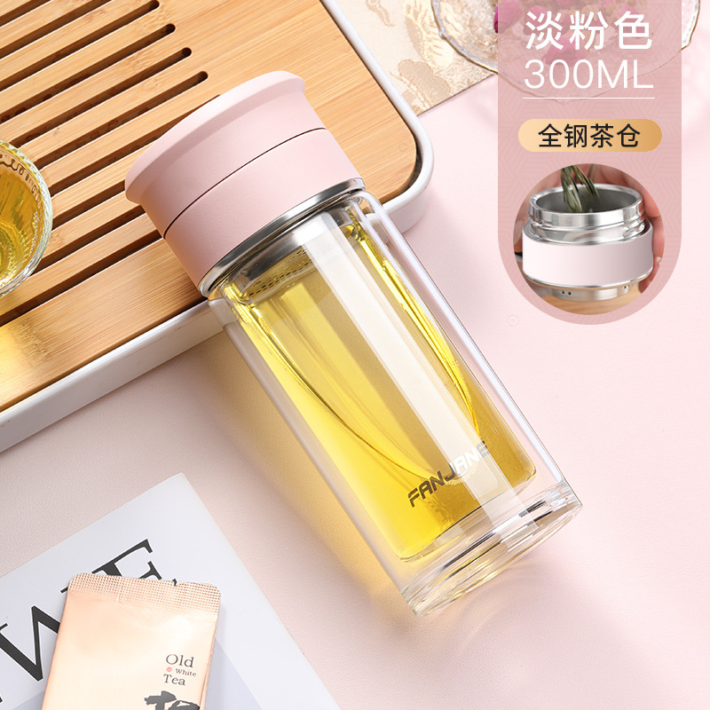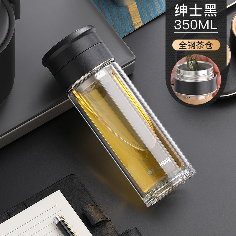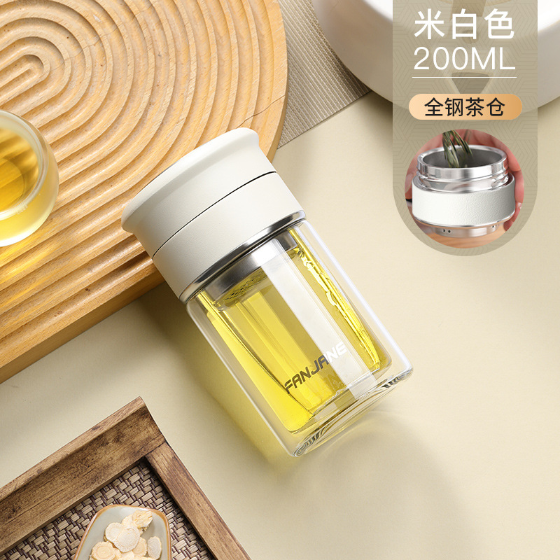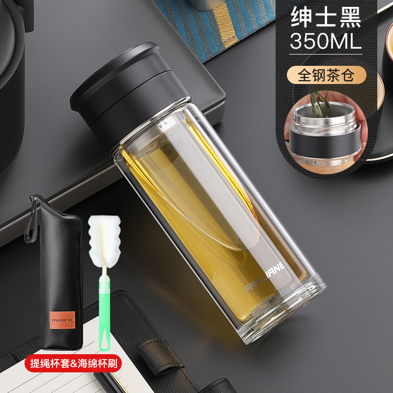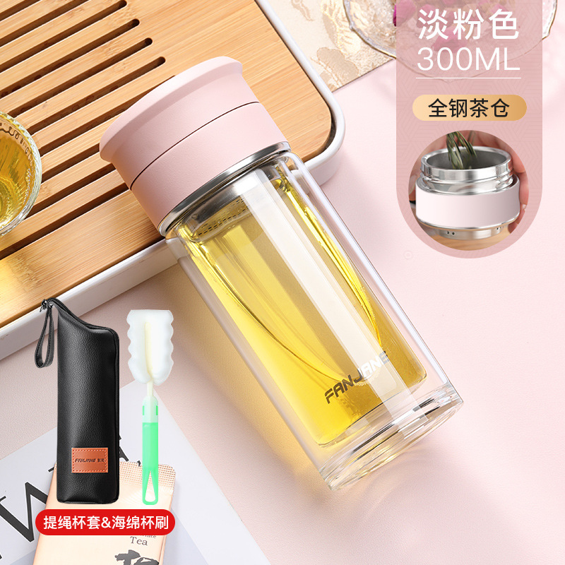 남성과 여성을위한 전통적이고 간단한 차-물 분리 유리 2 층 버블 티 컵 필터 차 여행 개성 컵 필터 물 컵