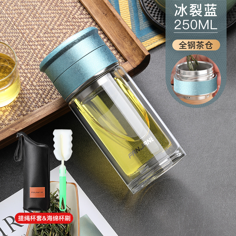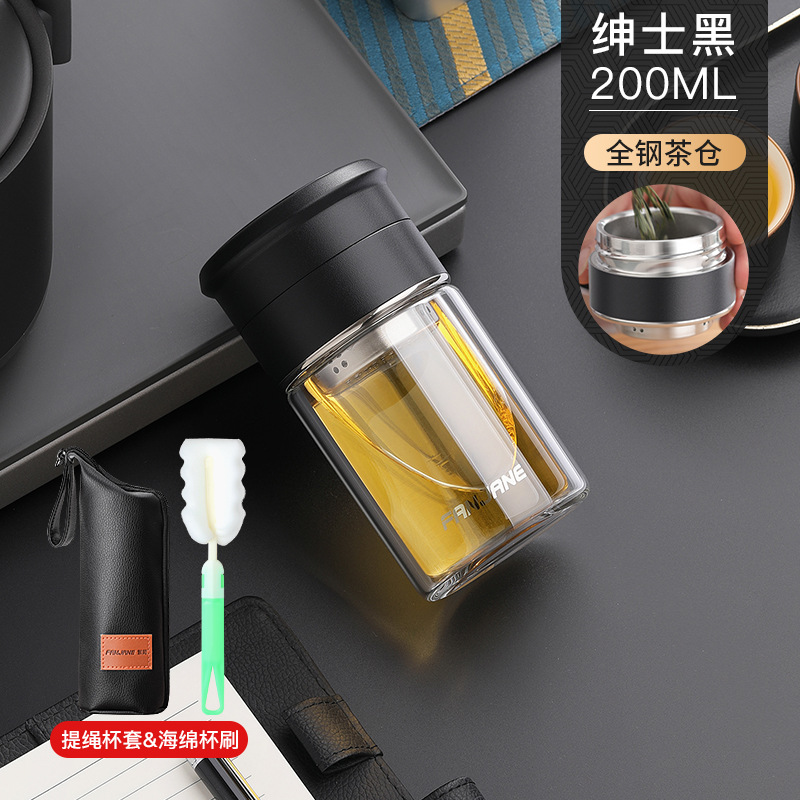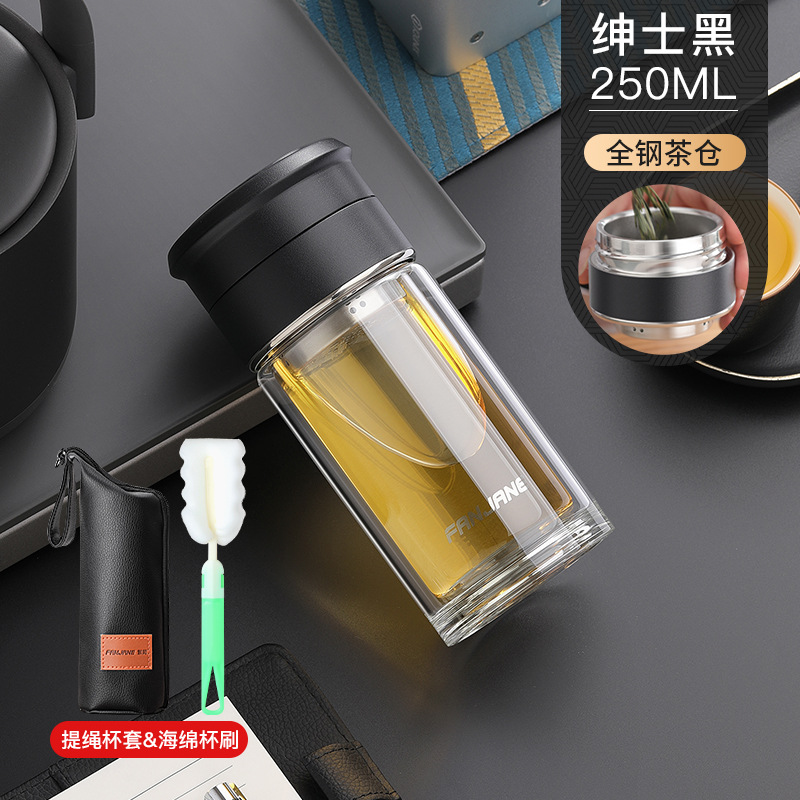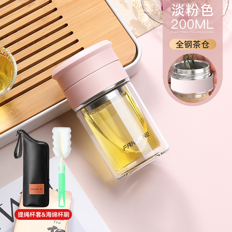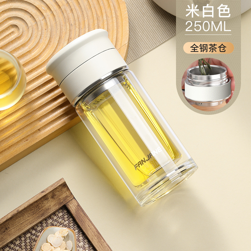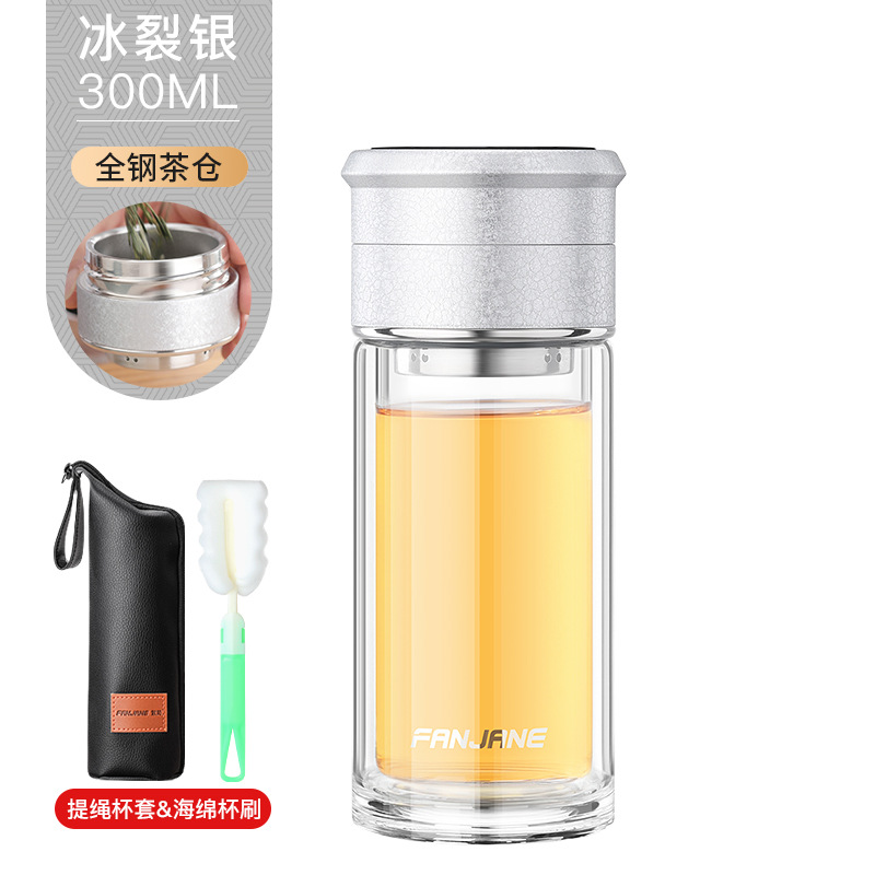 남성과 여성을위한 전통적이고 간단한 차-물 분리 유리 2 층 버블 티 컵 필터 차 여행 개성 컵 필터 물 컵