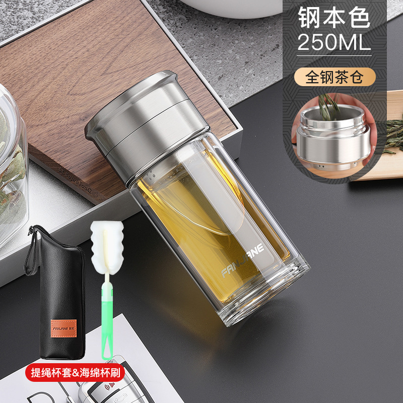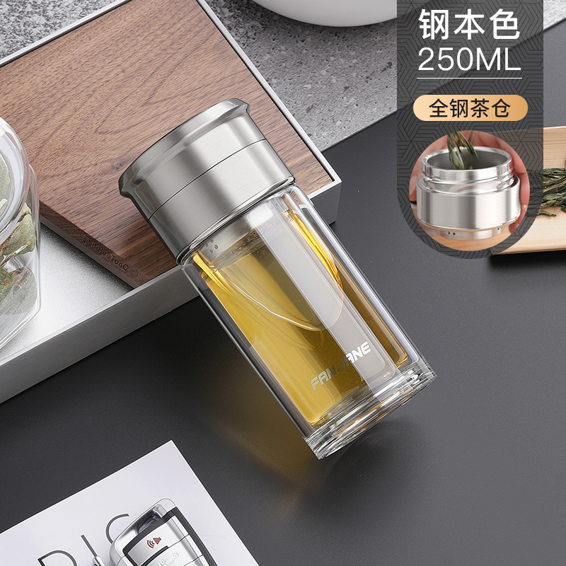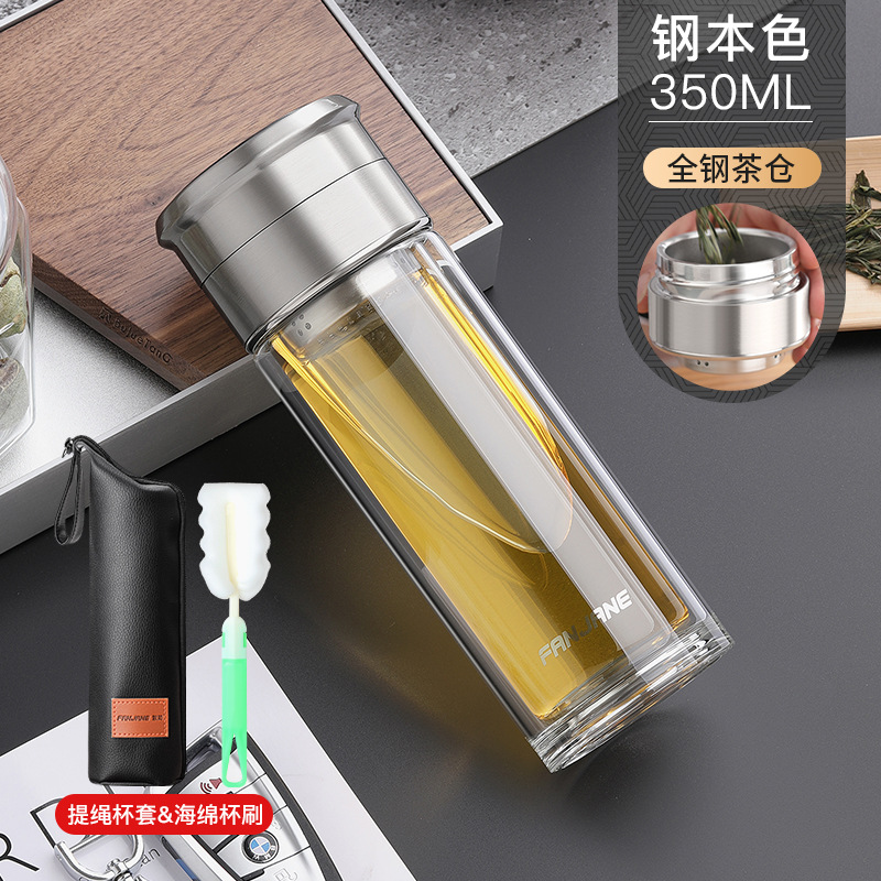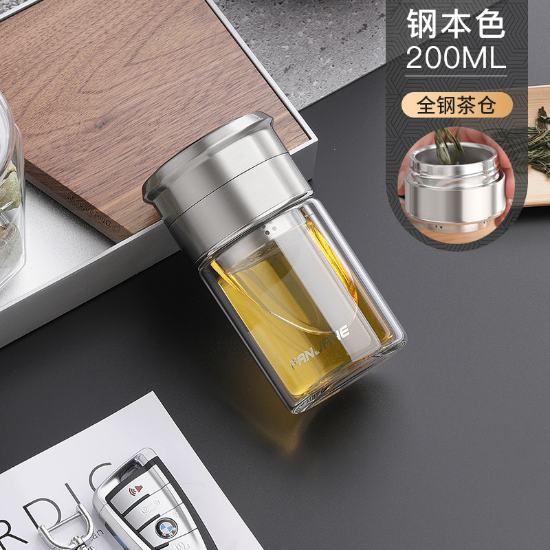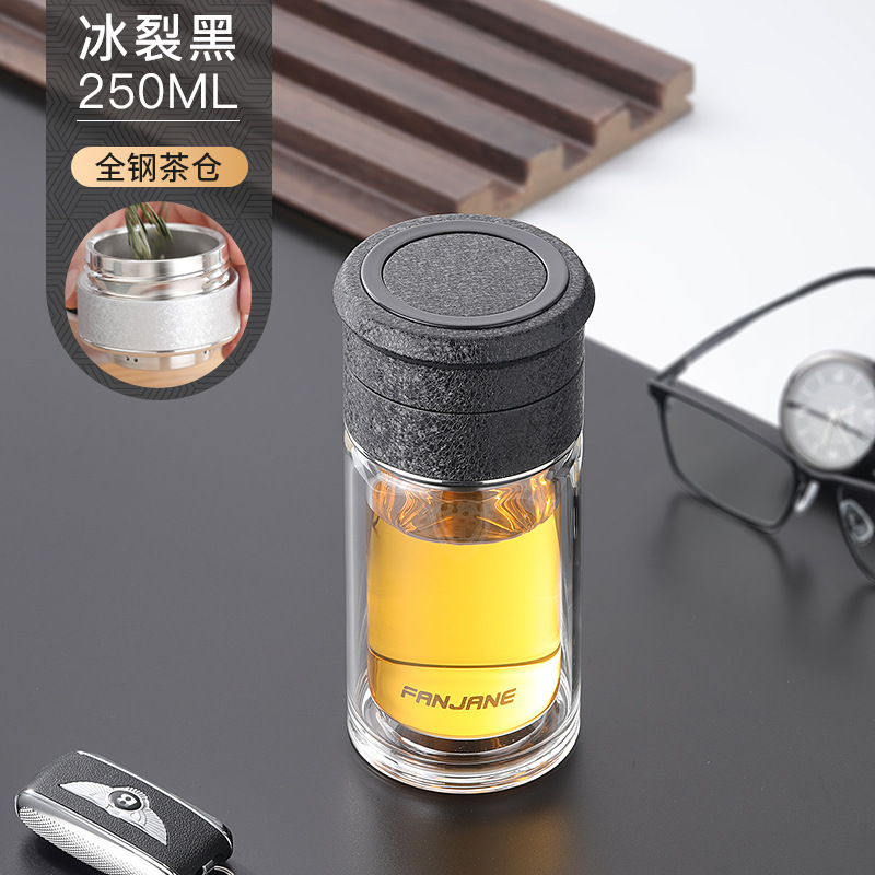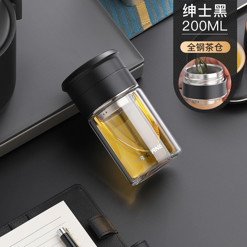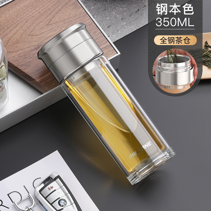 남성과 여성을위한 전통적이고 간단한 차-물 분리 유리 2 층 버블 티 컵 필터 차 여행 개성 컵 필터 물 컵