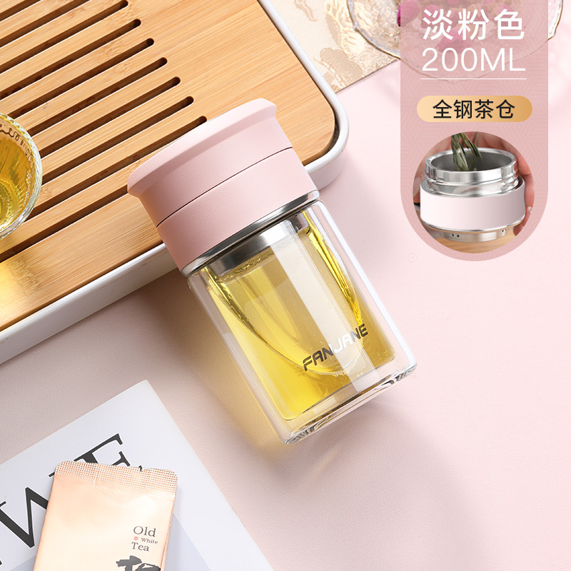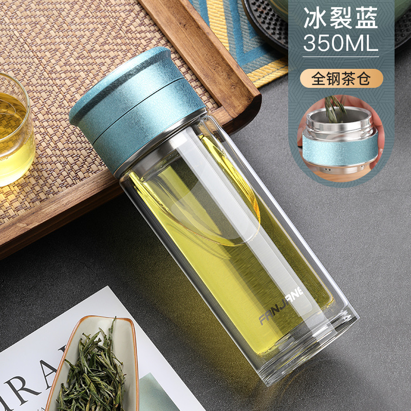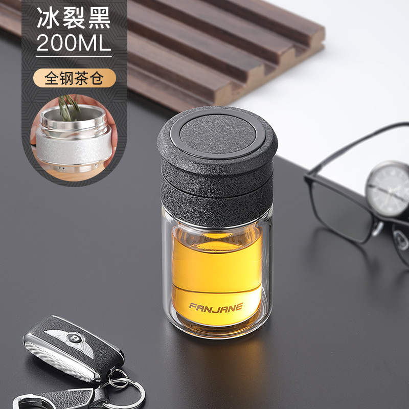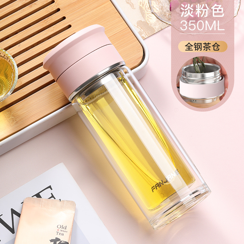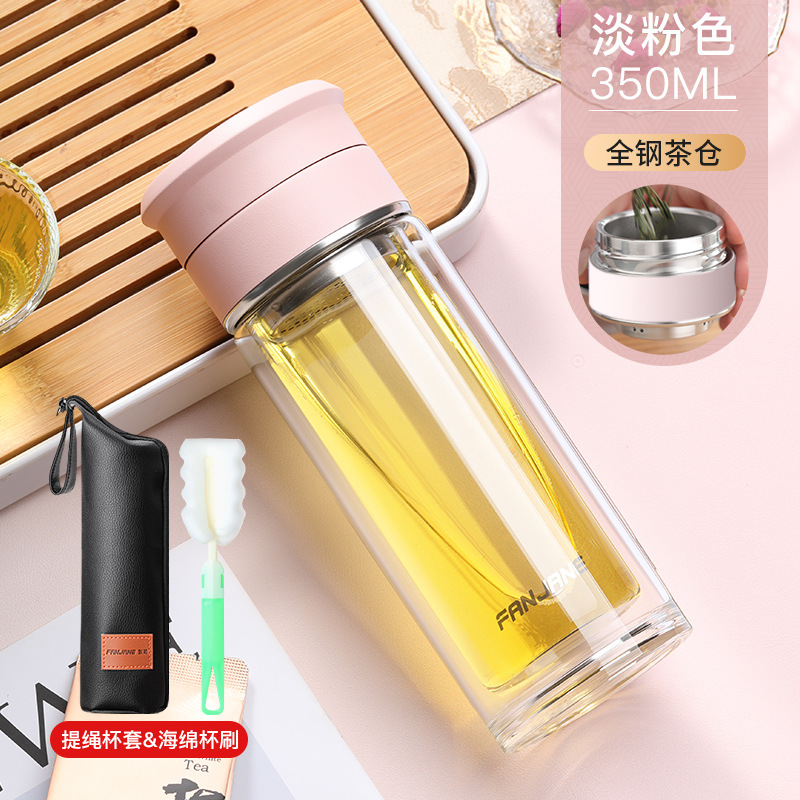 남성과 여성을위한 전통적이고 간단한 차-물 분리 유리 2 층 버블 티 컵 필터 차 여행 개성 컵 필터 물 컵스토어 가기