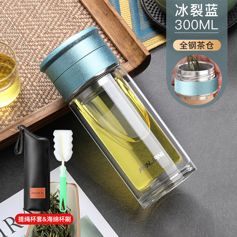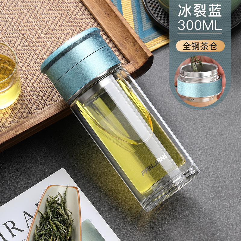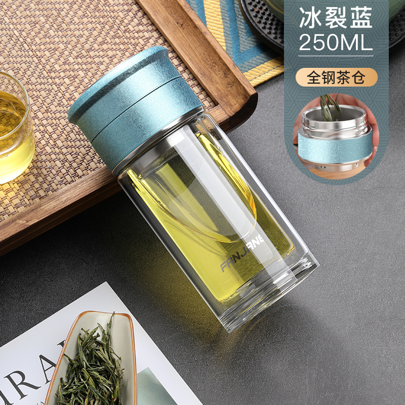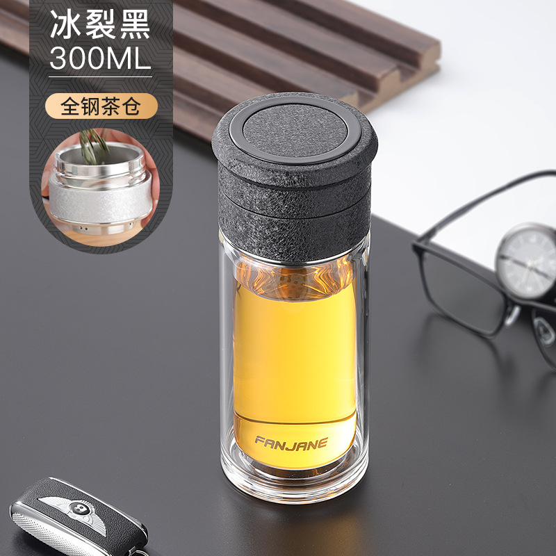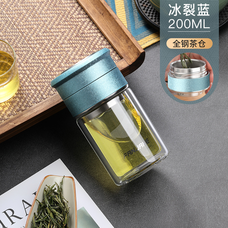 남성과 여성을위한 전통적이고 간단한 차-물 분리 유리 2 층 버블 티 컵 필터 차 여행 개성 컵 필터 물 컵스토어 가기