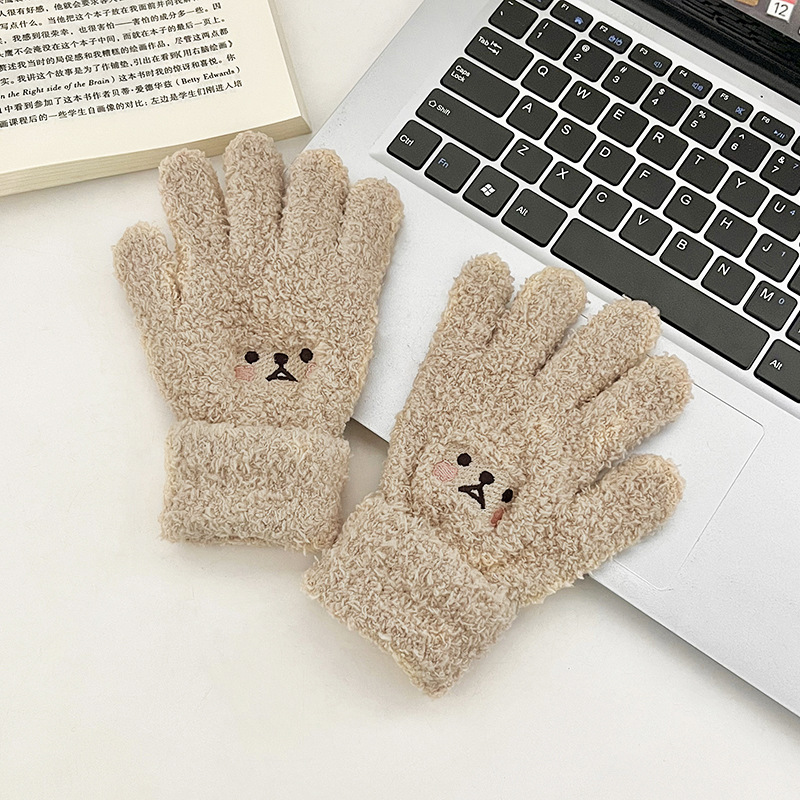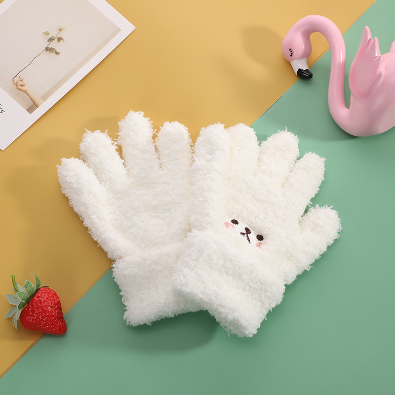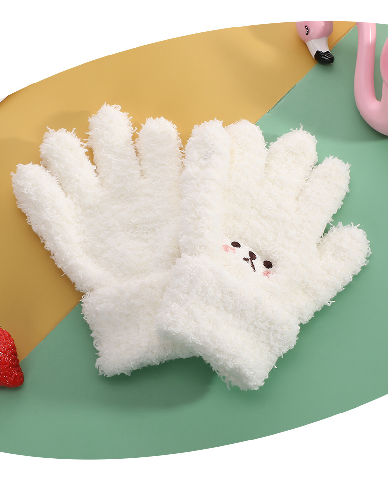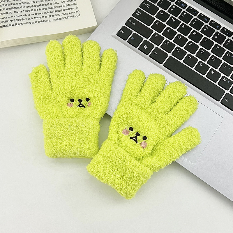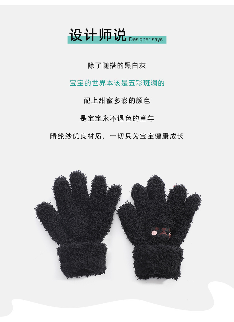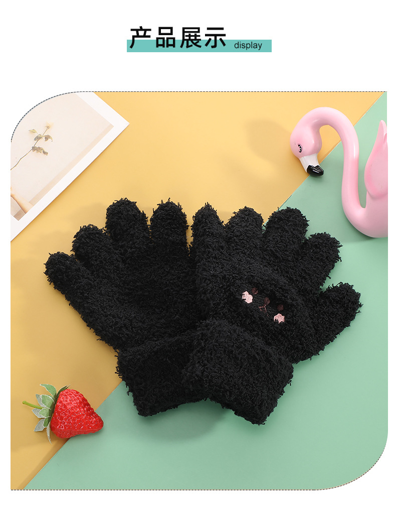 만화 어린이 겨울 반 벨벳 자수 장갑 단색 따뜻한 부드러운 곰과 벨벳 장갑 스팟 도매스토어 가기
