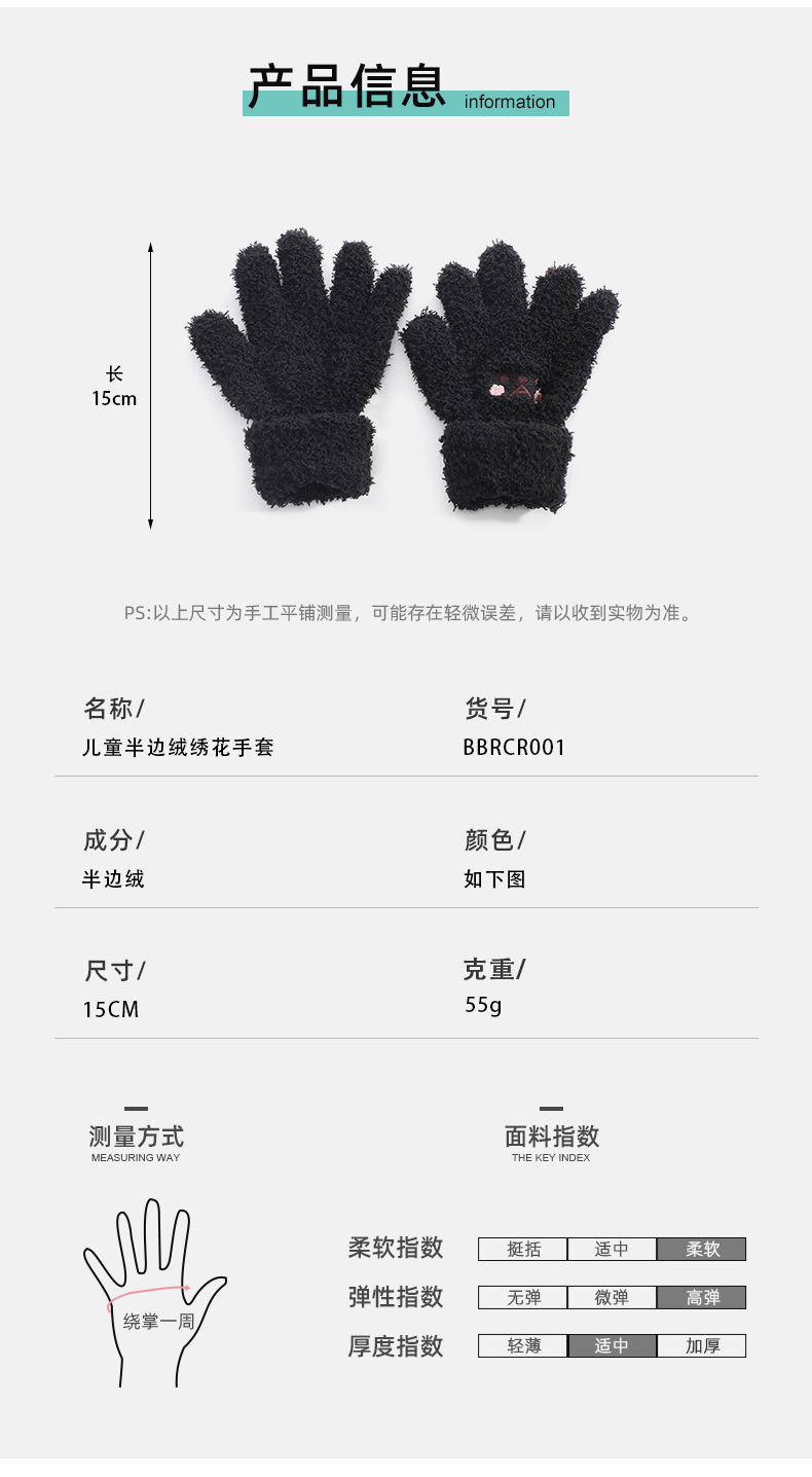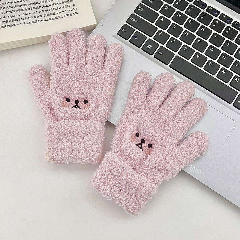 만화 어린이 겨울 반 벨벳 자수 장갑 단색 따뜻한 부드러운 곰과 벨벳 장갑 스팟 도매