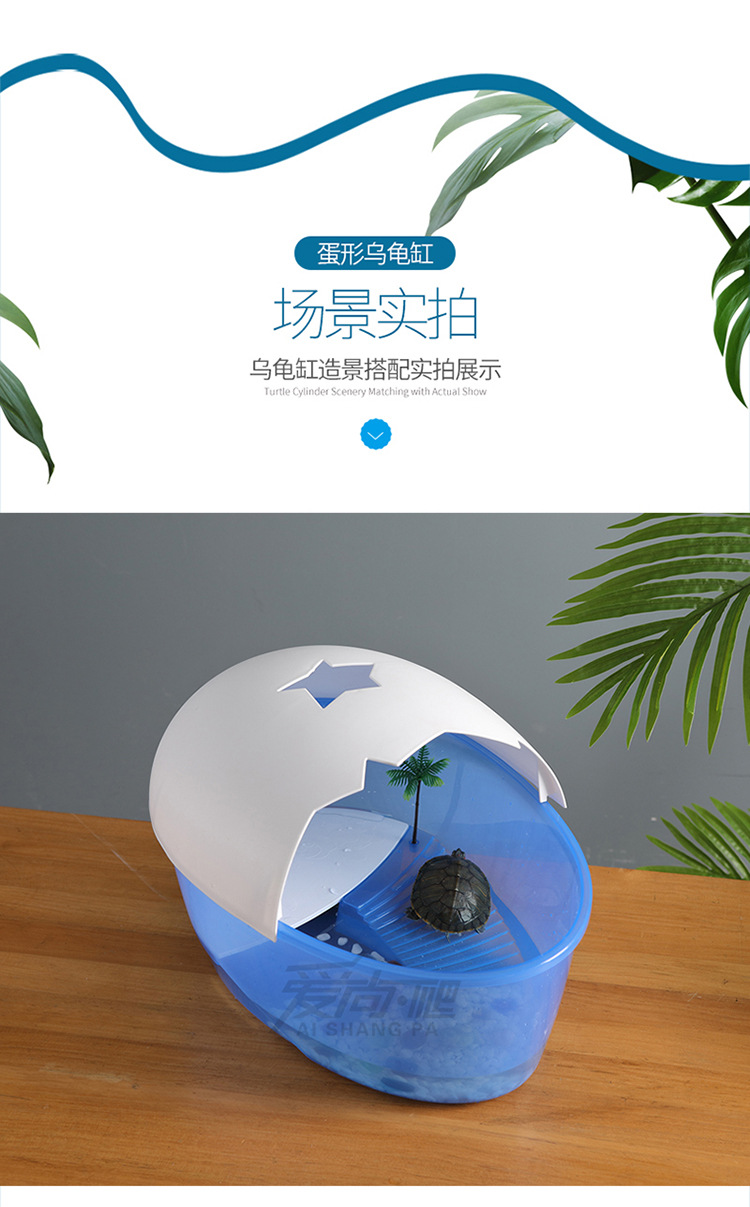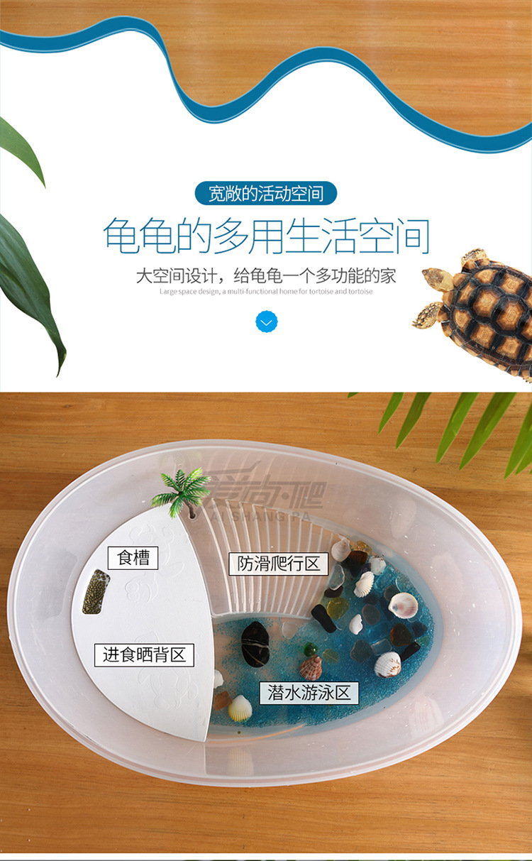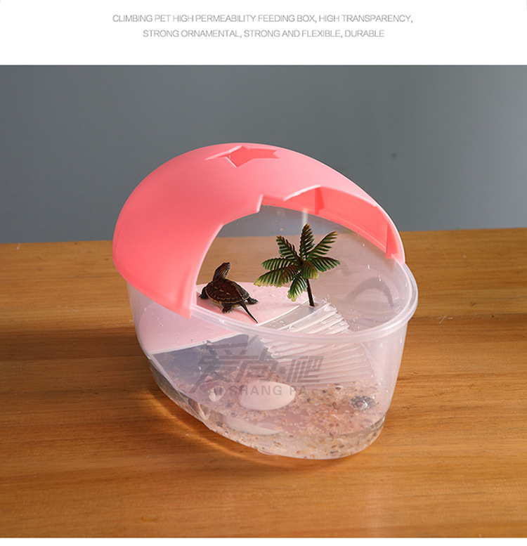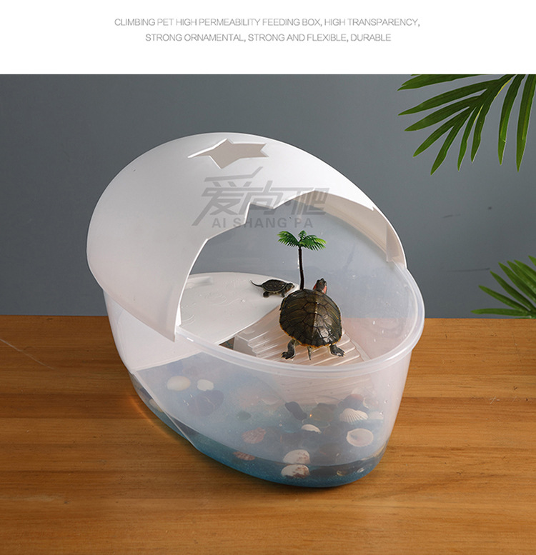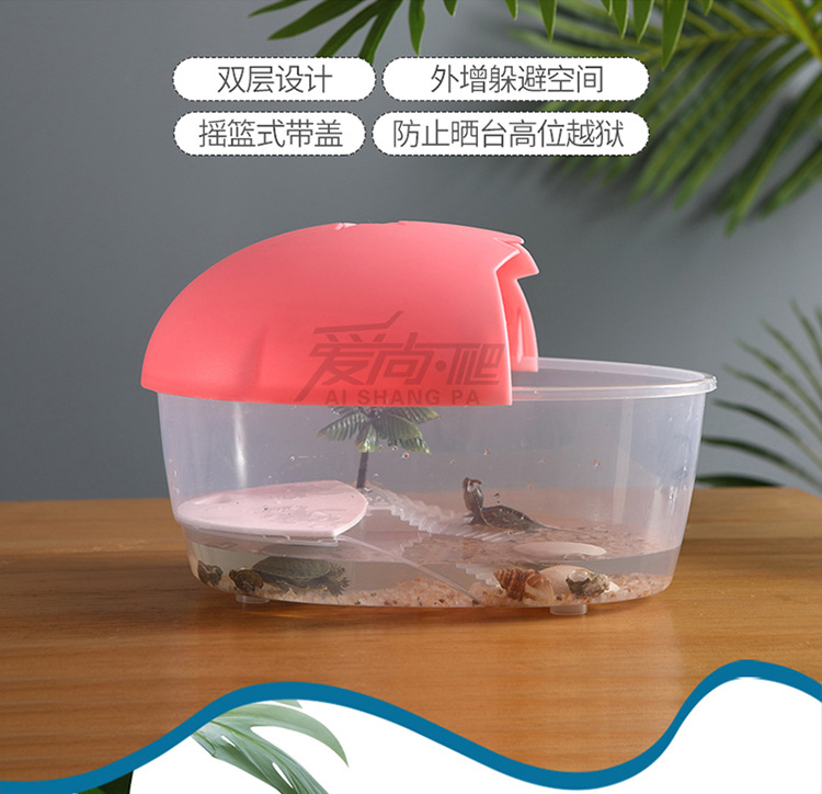 바스킹 테이블이있는 거북이 탱크 홈 빌라 크리 에이 티브 플라스틱 소형 및 중형 거북이 먹이 상자 커버가있는 어항