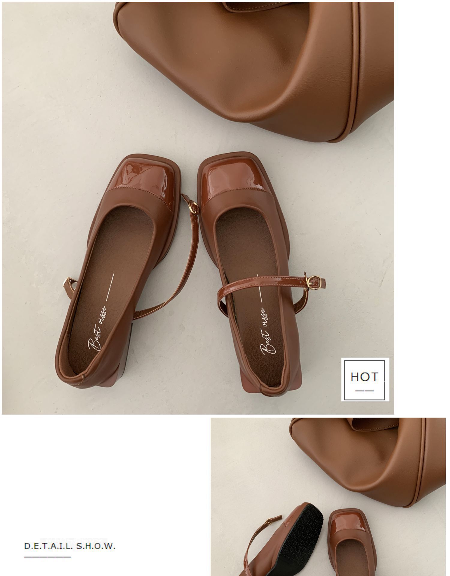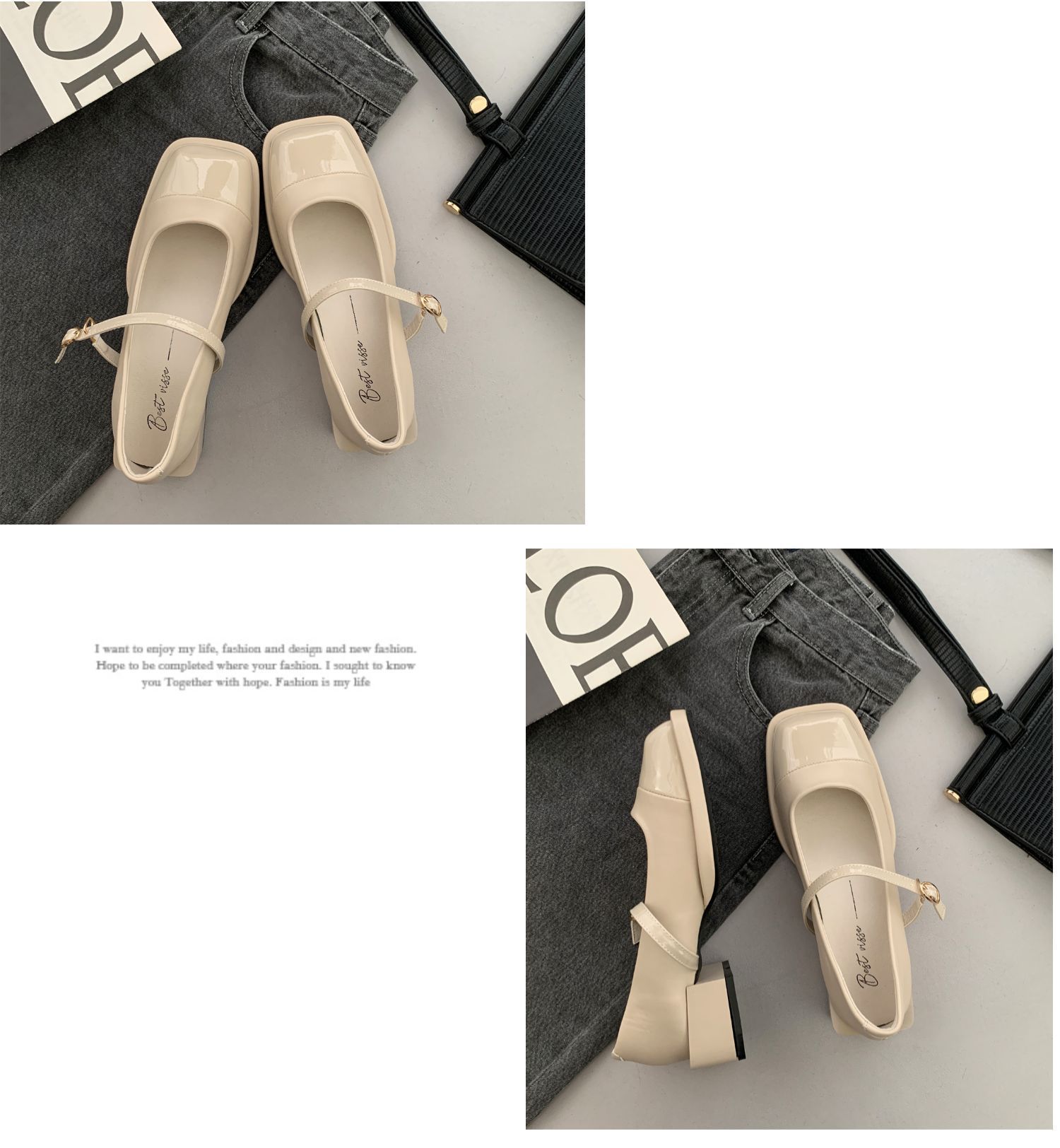 2022 새로운 두꺼운 뒤꿈치 로퍼 여성을위한 작은 가죽 신발 새로운 봄 프랑스 틈새 메리 제인 블랙 스퀘어 발가락 신발스토어 가기
