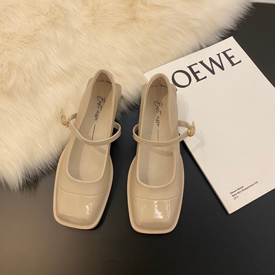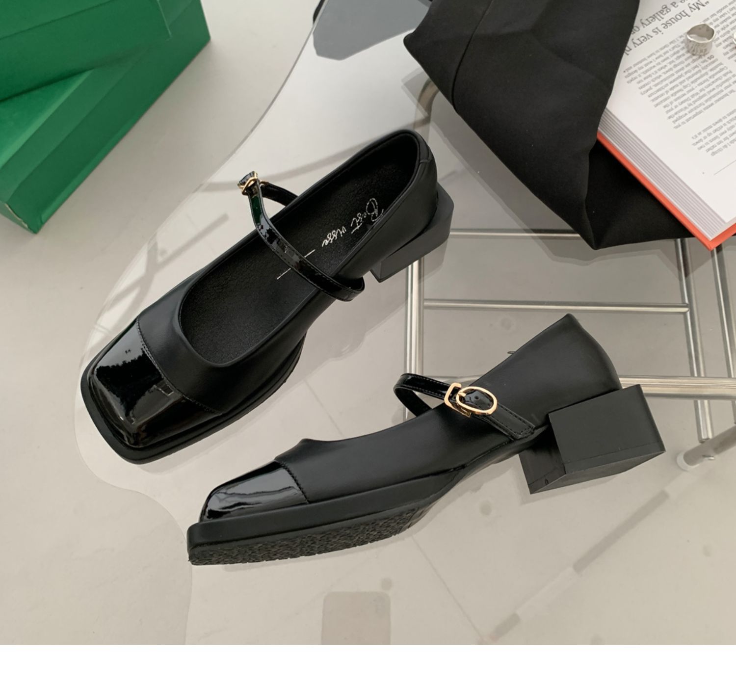 2022 새로운 두꺼운 뒤꿈치 로퍼 여성을위한 작은 가죽 신발 새로운 봄 프랑스 틈새 메리 제인 블랙 스퀘어 발가락 신발