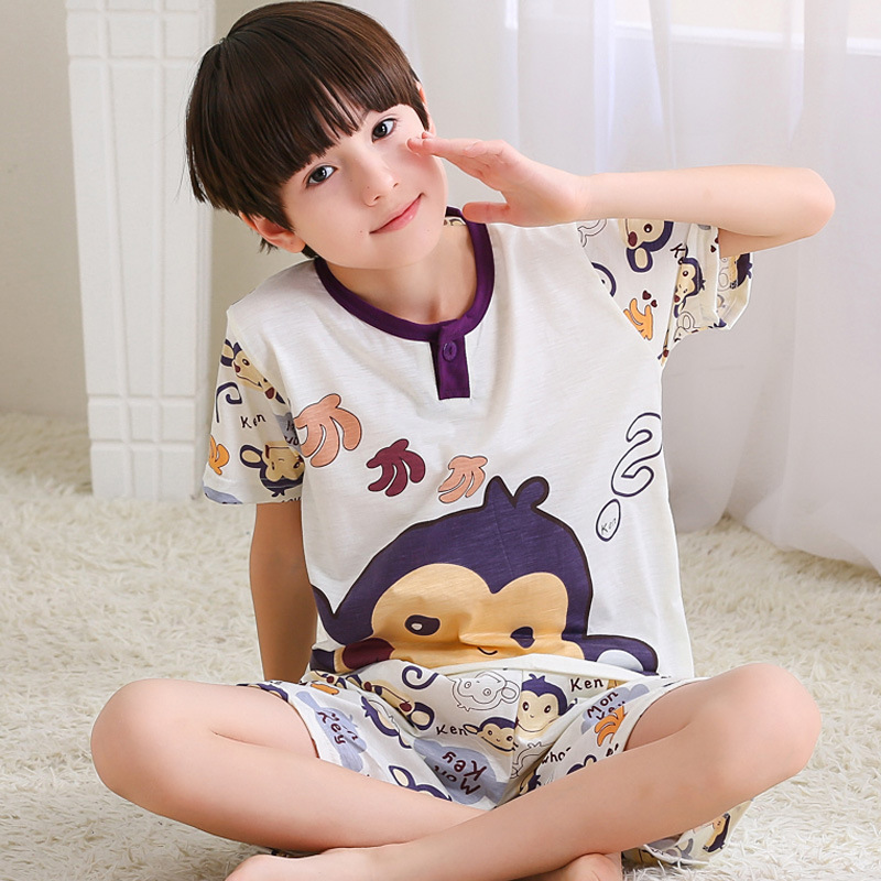 어린이 잠옷 소년의 여름 순면 얇은 반팔 바지 어린이 아기 소년 중간 및 큰 어린이 가정 옷 세트
