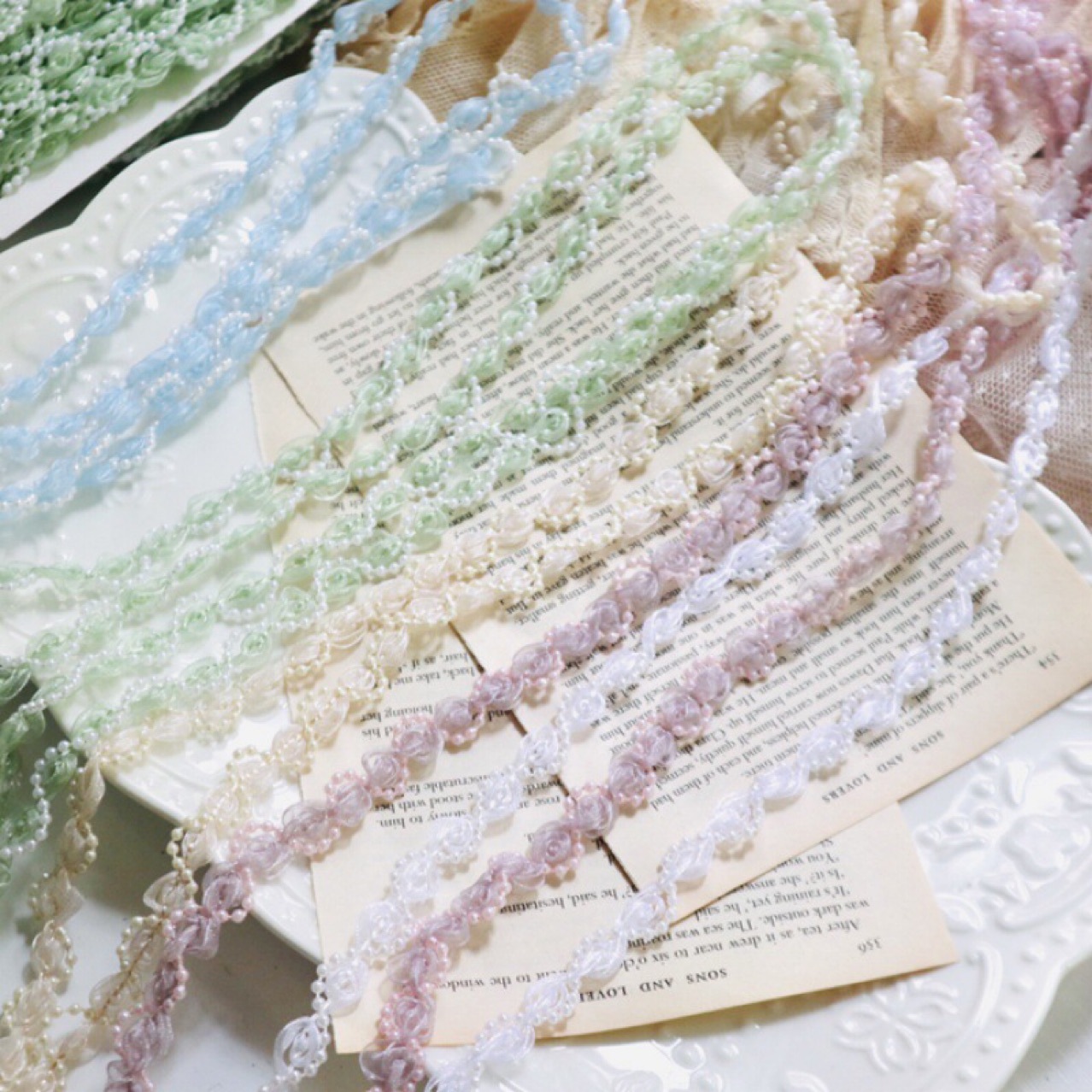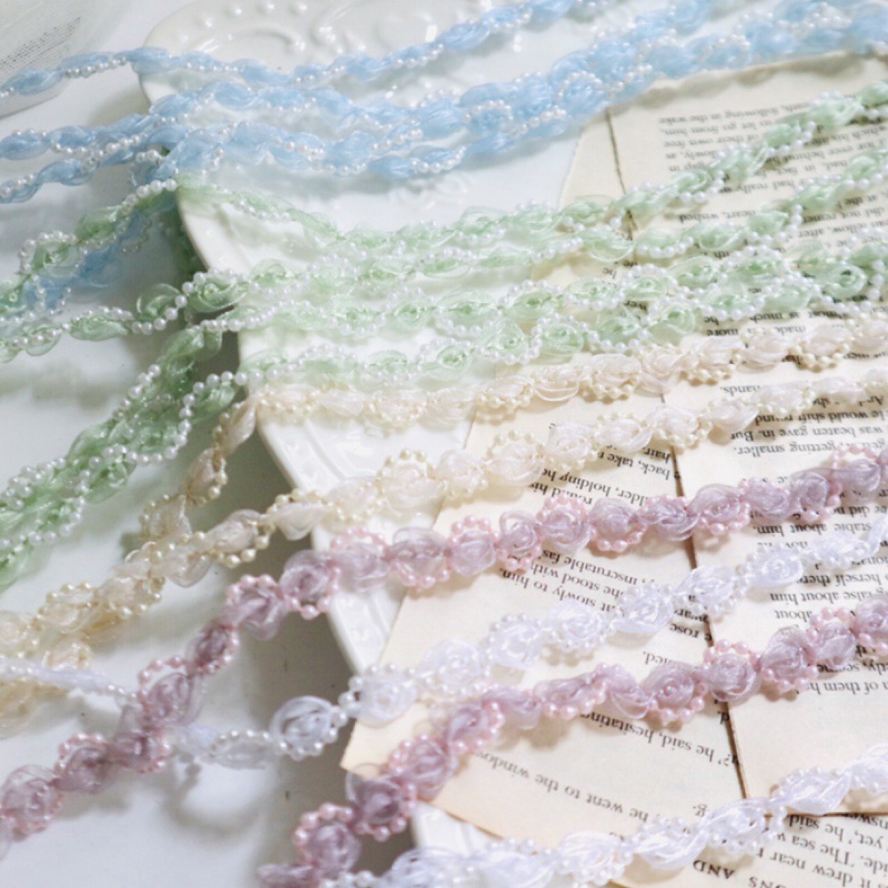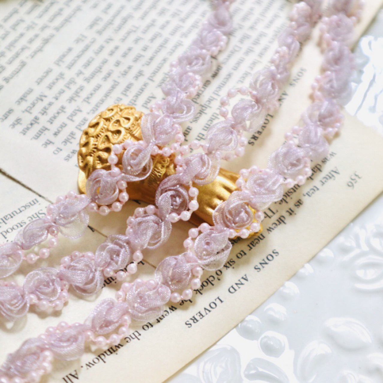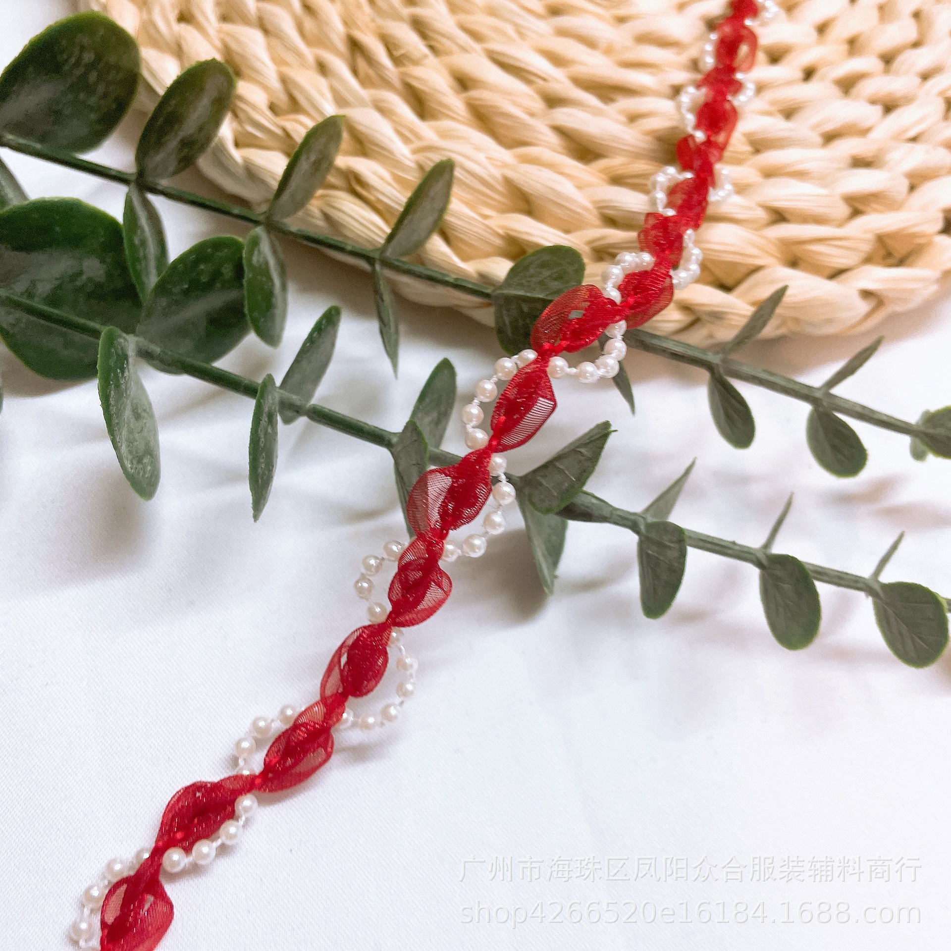 주름진 장미 원사 리본 웨빙 짠 장식 의류 수제 DIY 소재 1cm 하이 퀄리티 구슬 원사