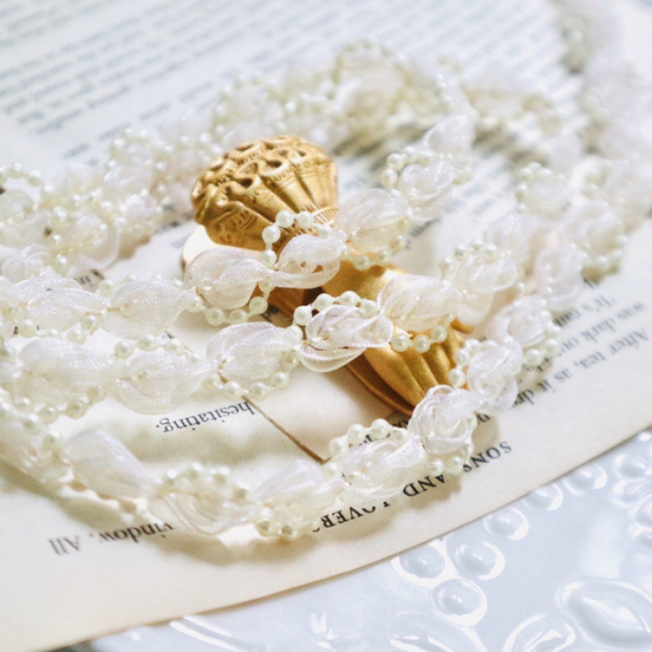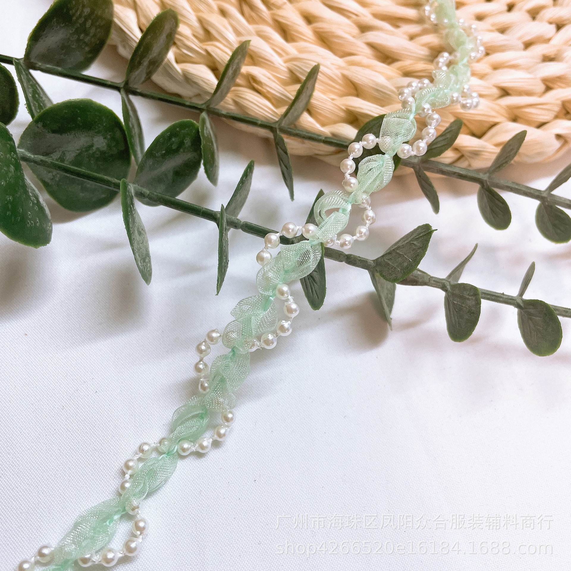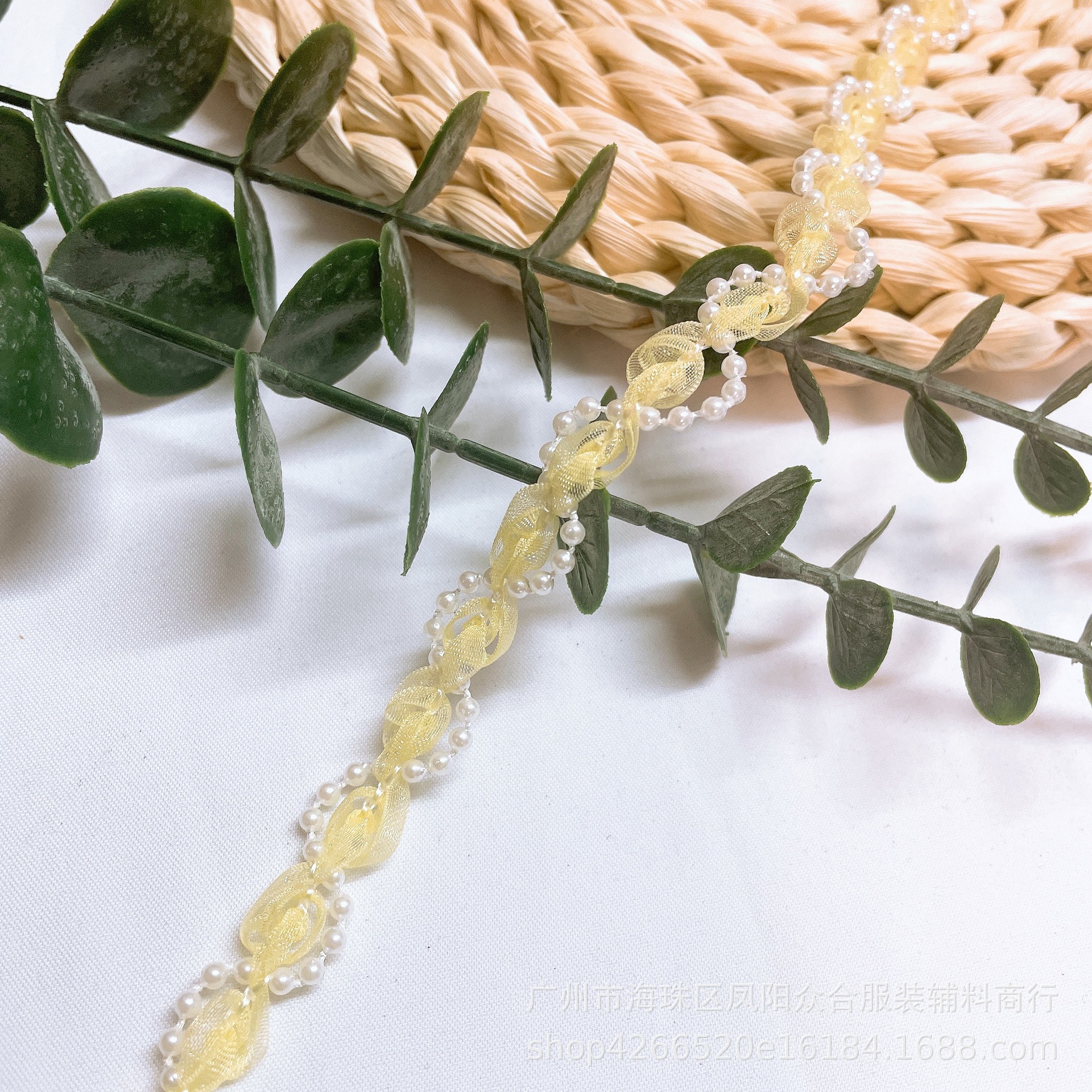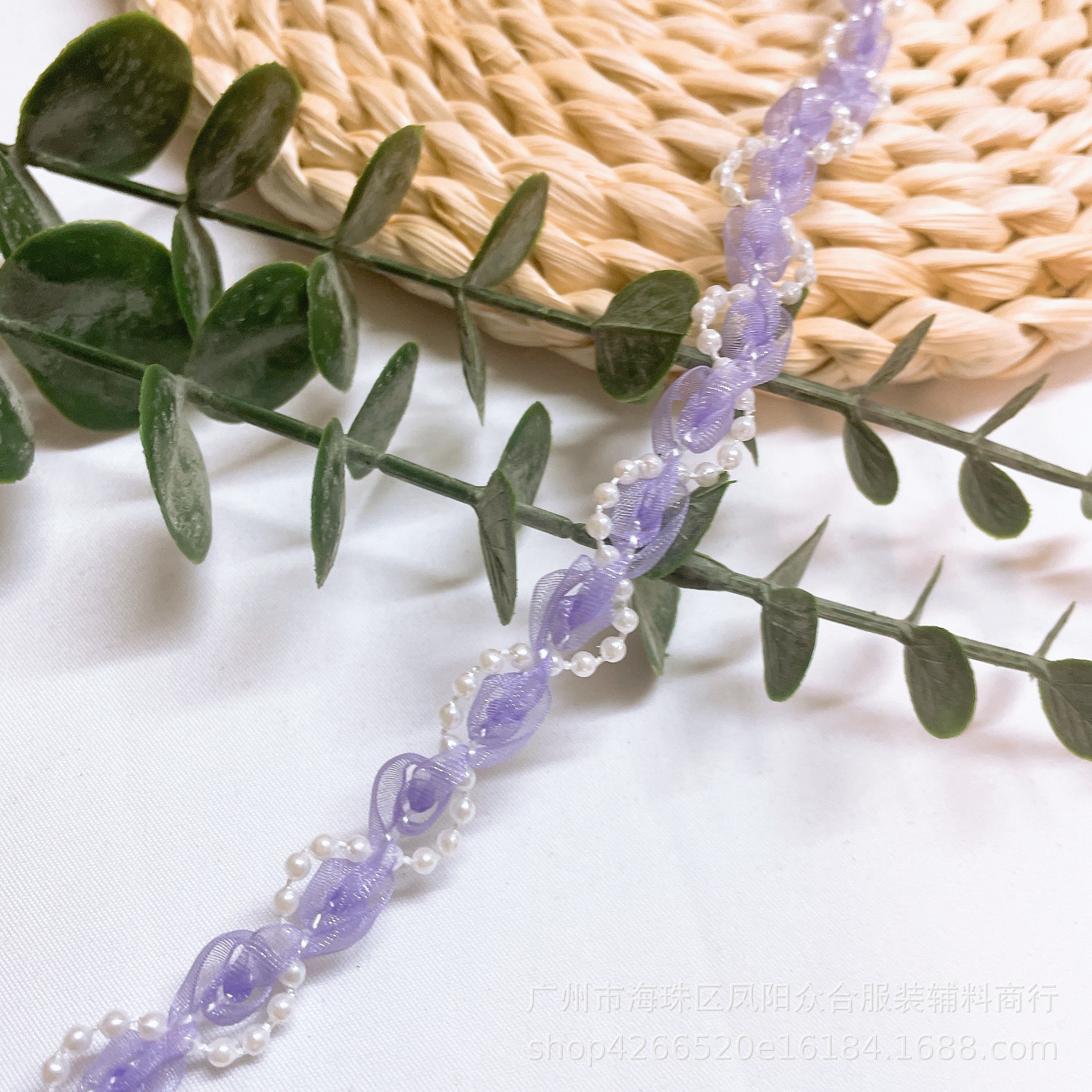 주름진 장미 원사 리본 웨빙 짠 장식 의류 수제 DIY 소재 1cm 하이 퀄리티 구슬 원사