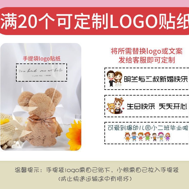 산호 양털 곰 수건 개업 결혼식 생일 가게 축하 축제 이벤트 수건 곰 인쇄 로고스토어 가기