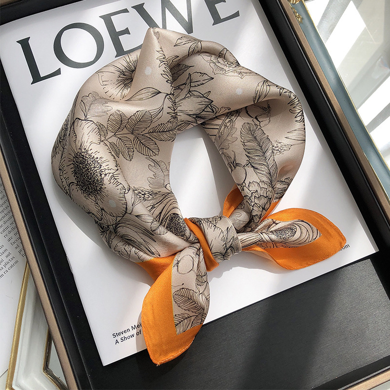 • SKU-01 손으로 그린 꽃-베이지 53 실크 스퀘어 스카프