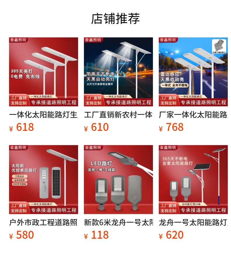 Wild Wolf II 통합 태양광 가로등, 도로 조명, 지능형 유도 LED 고휘도 국경 간 가로등스토어 가기