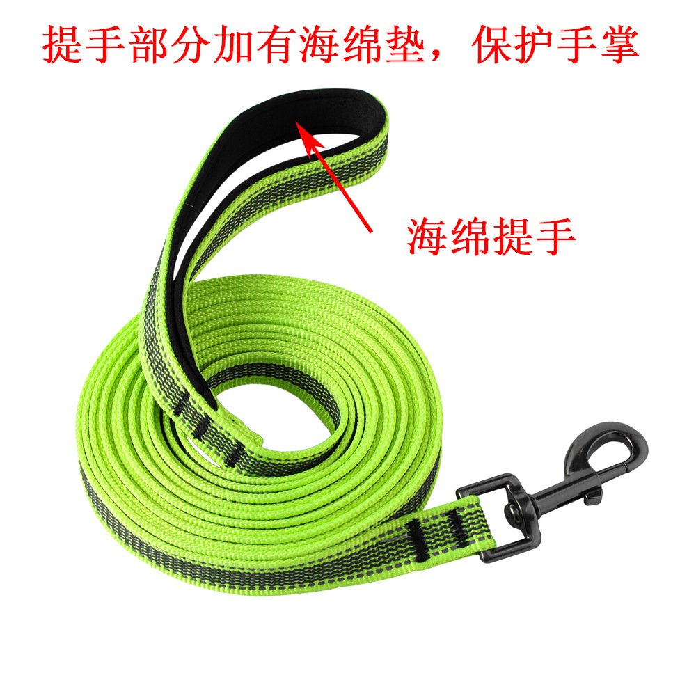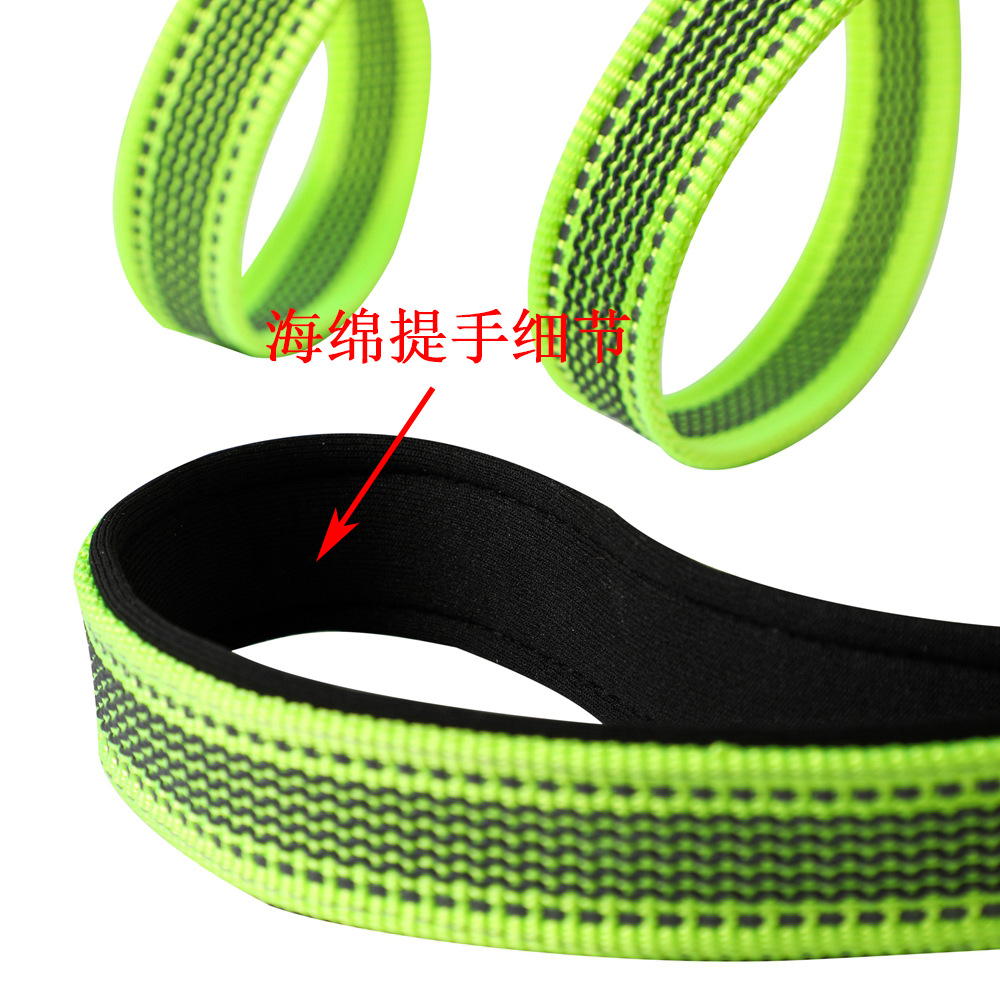 牵引绳自带反光条和防滑条,把手有海绵,握感舒适不勒手。