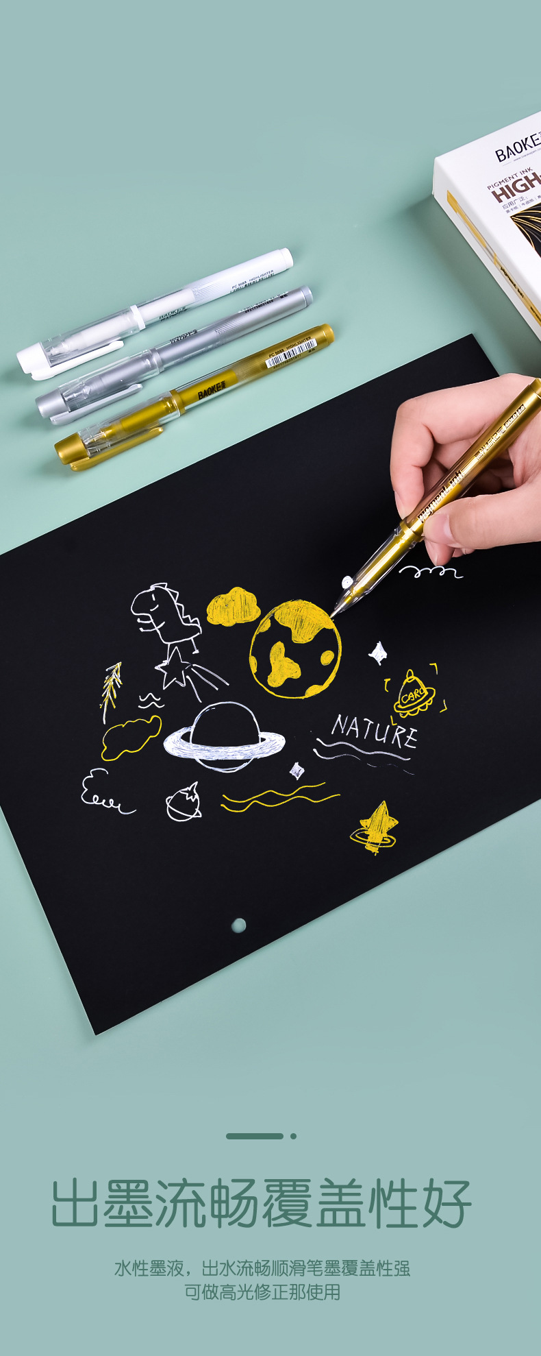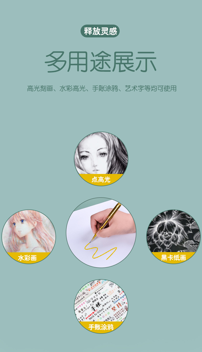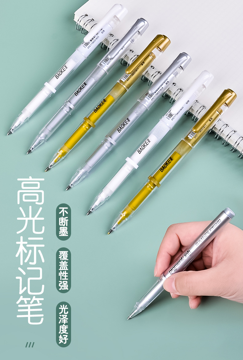 돼지 고기 그림 마커 플래시 손 계정 펜 골드 실버 화이트 하이 글로우 펜 아트 컬러 젤 펜 1.0mm