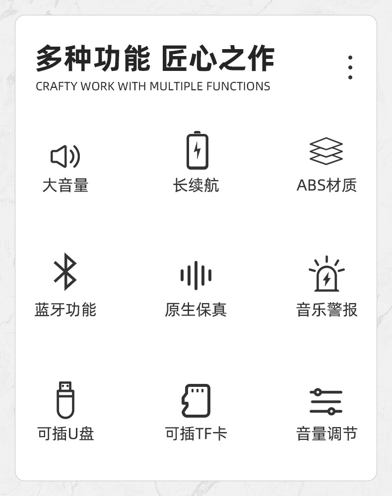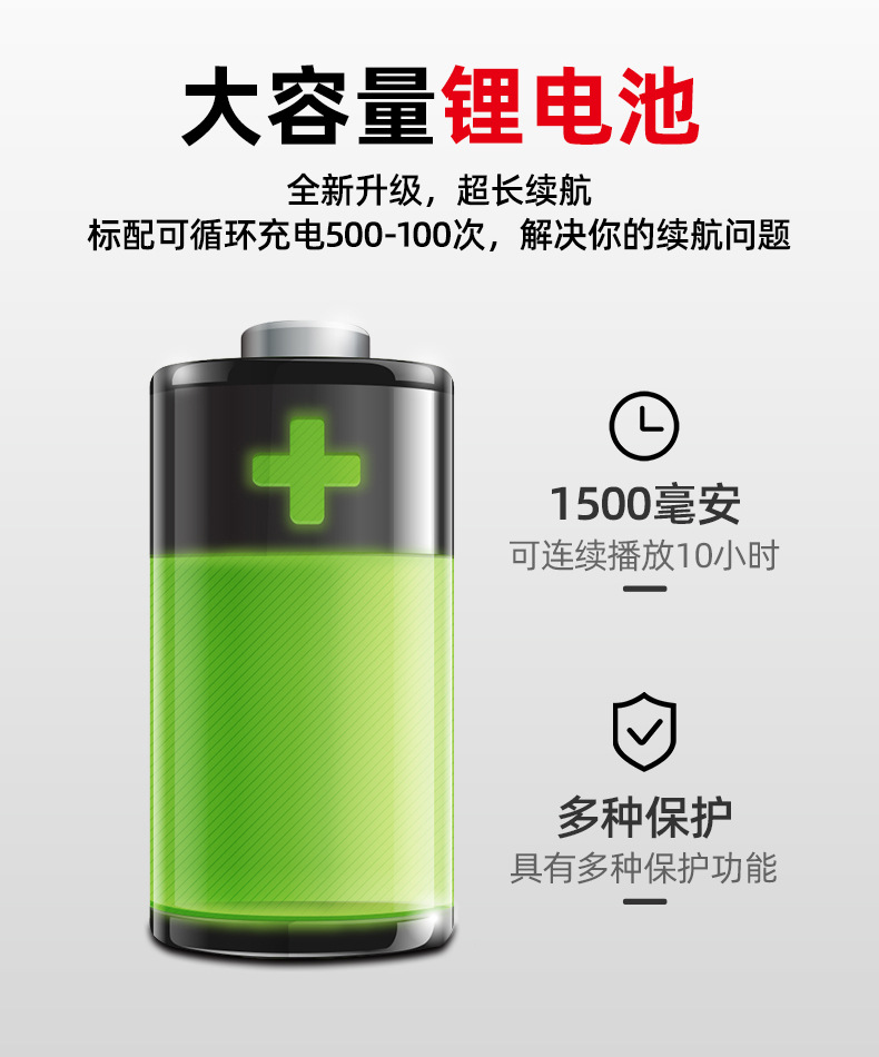 • 블루투스 카드 [단일 배터리/충전식/전원 디스플레이] 를 8 시간 동안 재생할 수 있음