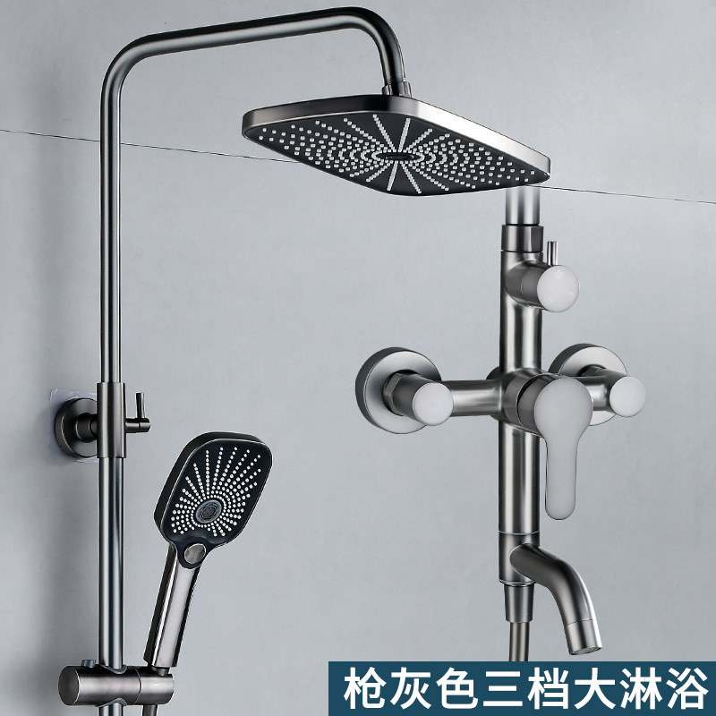 총 회색 샤워 헤드 세트 가정용 샤워 욕실 욕조 스테인레스 스틸 샤워 헤드 비 노즐