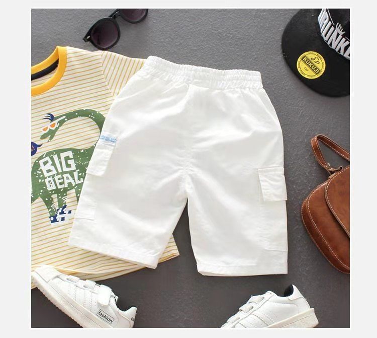 남아 면 반바지 한국 스타일 어린이 여름 카고 바지 아기 캐주얼 반바지 중간 길이 바지 남아 반 길이 바지 서양 스타일