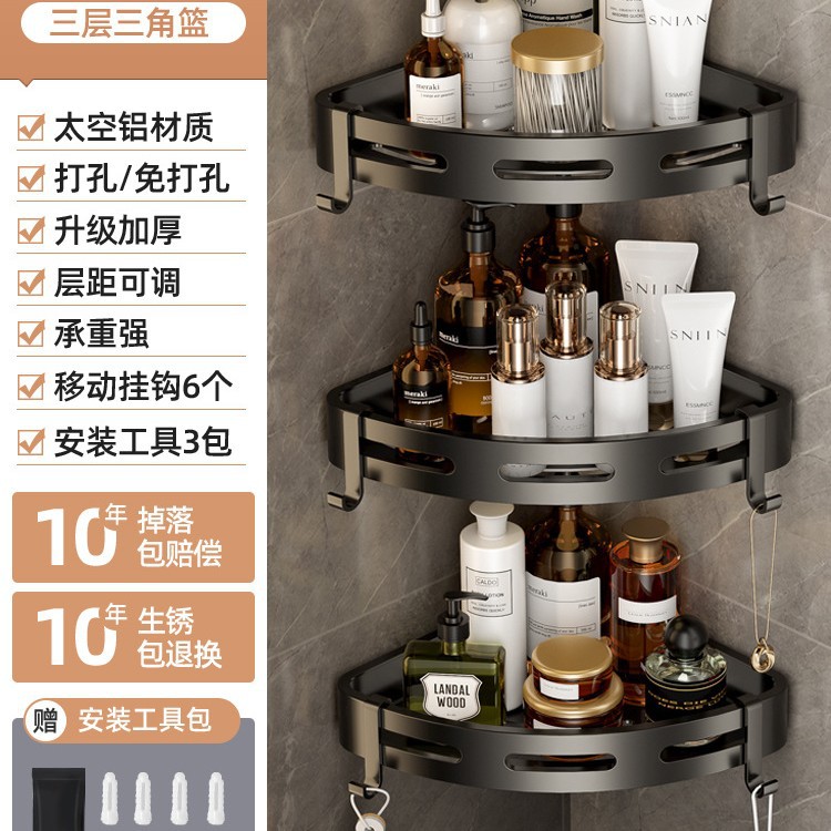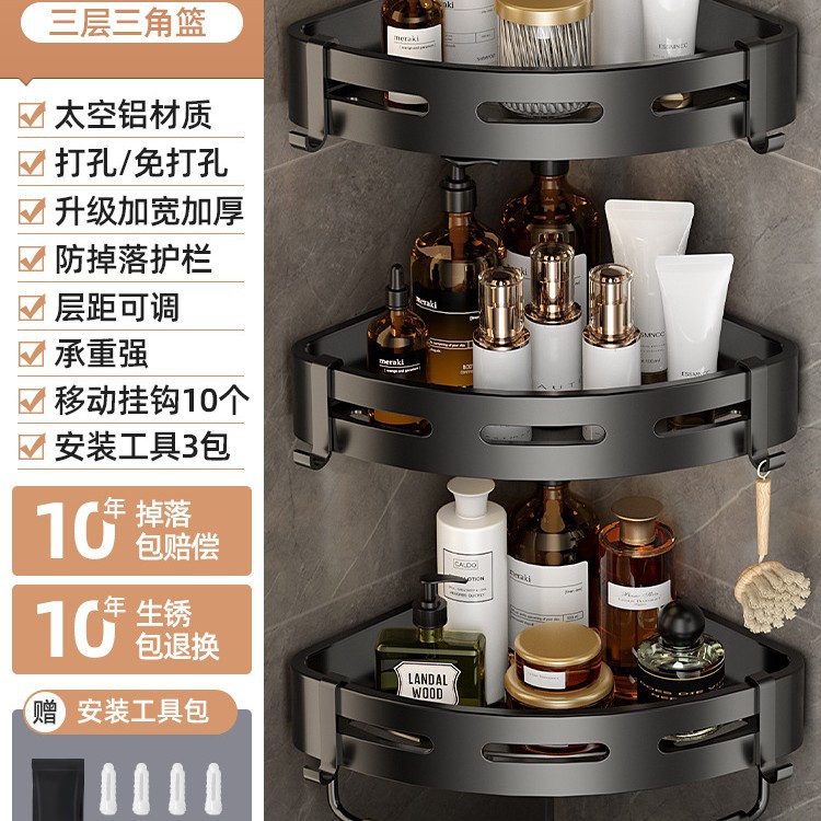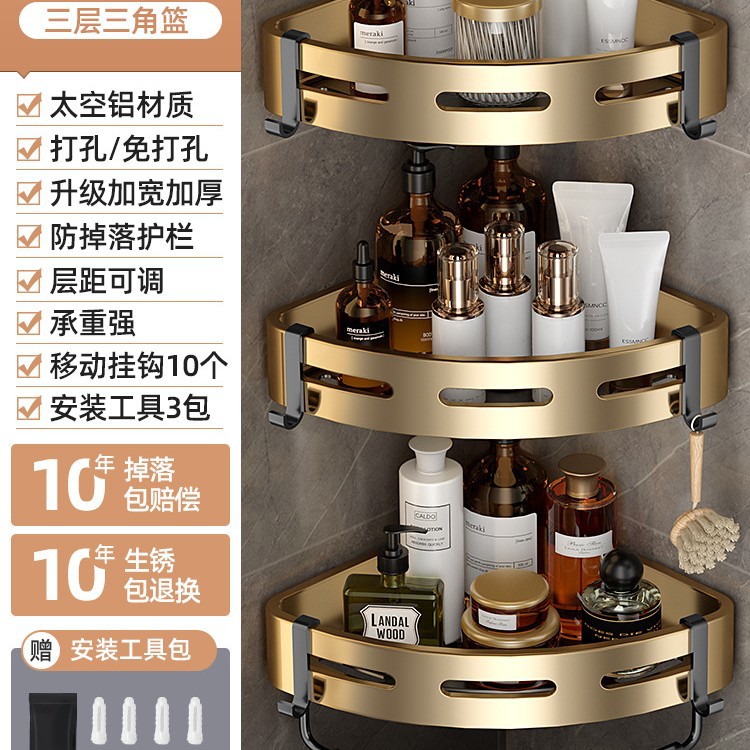 • 3 층 블랙 골드 업그레이드 두꺼운 삼각형 바구니 + 교수형 막대