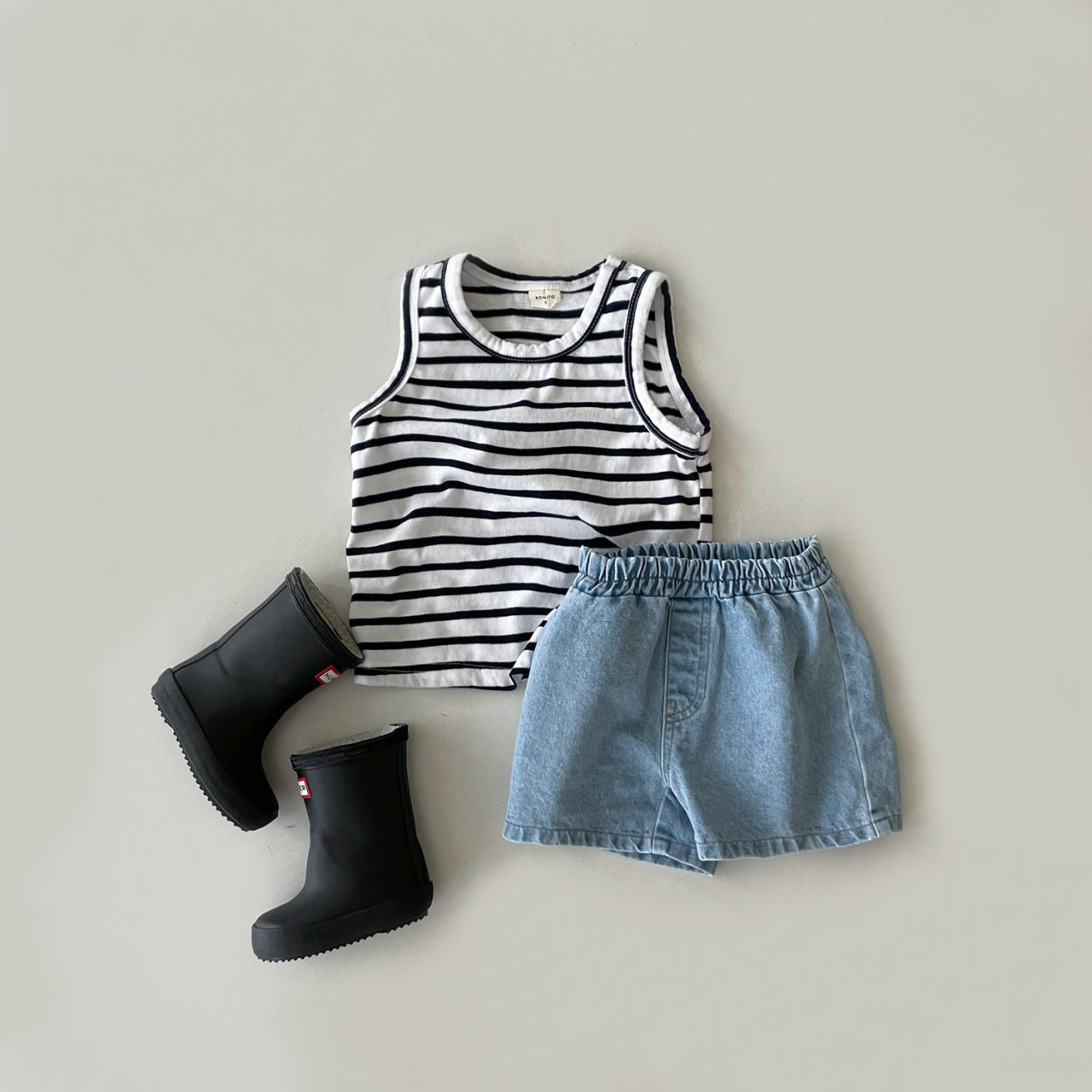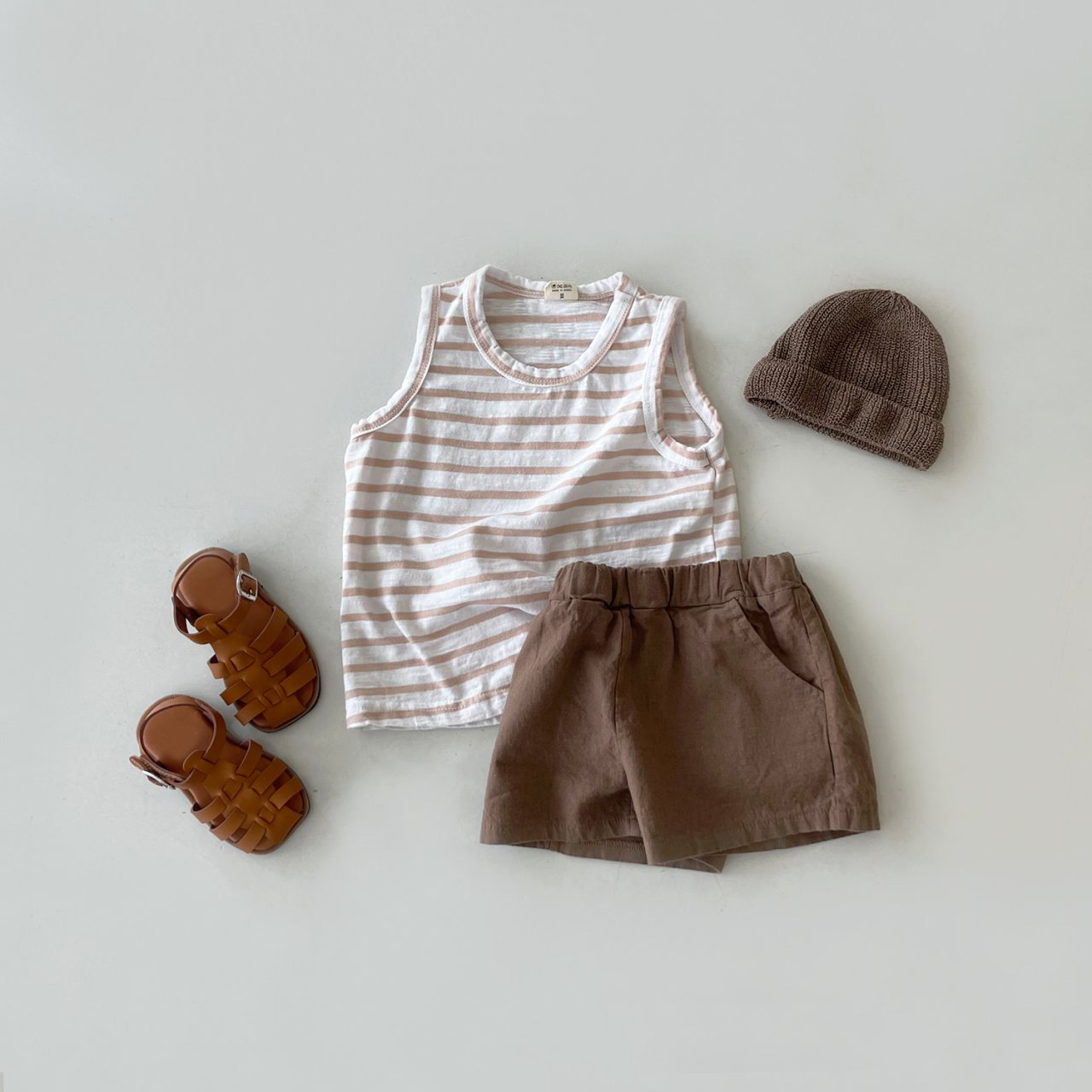 【클리어런스】아동용 줄무늬 민소매 여름옷 한국 스타일 아동복 인스타 유아 민소매 티셔츠 여름 얇은 모델