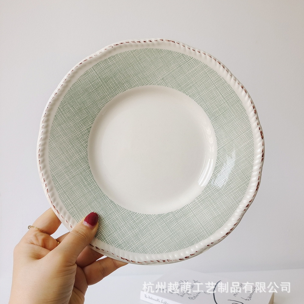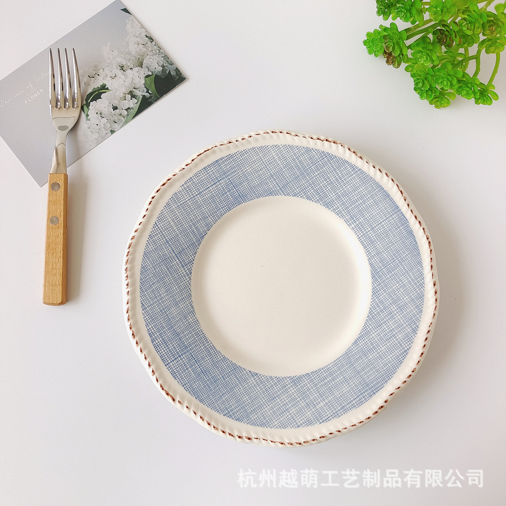 일본식 식기 빈티지 올드 스테이크 플레이트 세라믹 플레이트 그물 레드 서양 플레이트 일본식 플랫 플레이트 디저트 플레이트