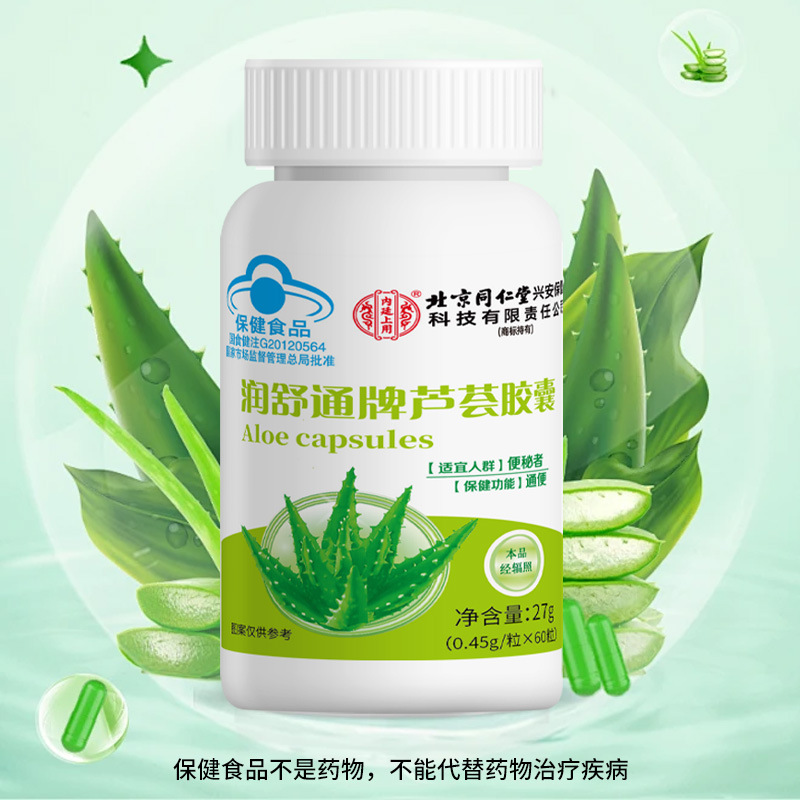 베이징 Tongrentang 내부 사용 알로에 캡슐 60 정 변비 건강 관리 제품 완화스토어 가기