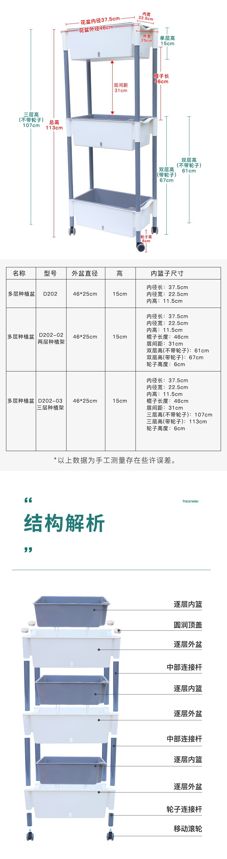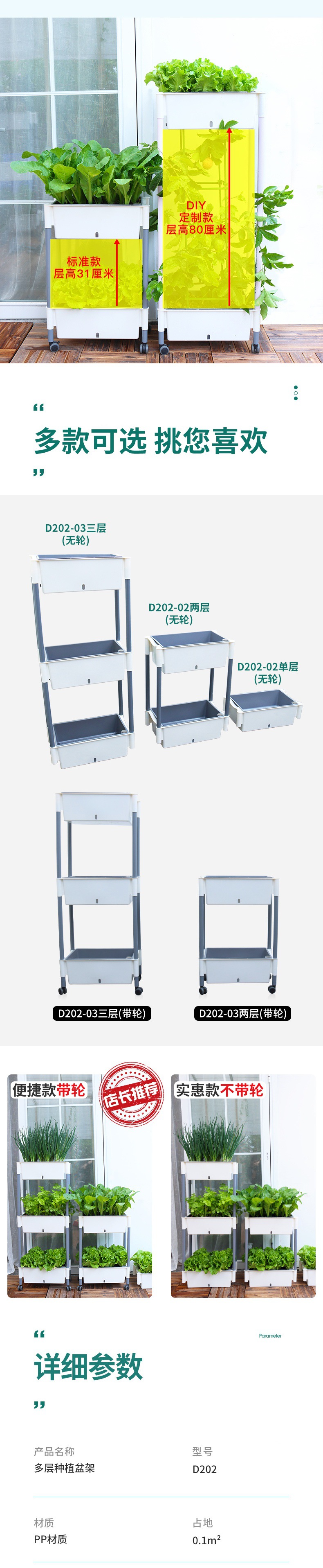 • 바퀴가 달린 D202-03 3 층 야채 분지