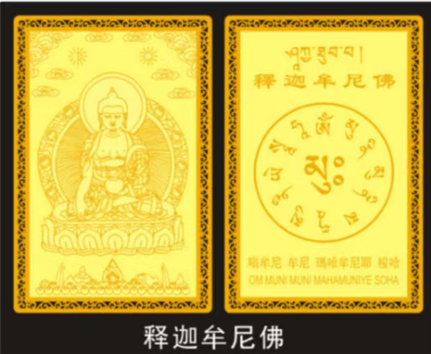 멀티 스타일 자키 자키 램 페인트 골드 벨트 플라스틱 필름 골드 카드 만쥬리 부의 신 의학 마스터 부처 휴대용 구리 카드