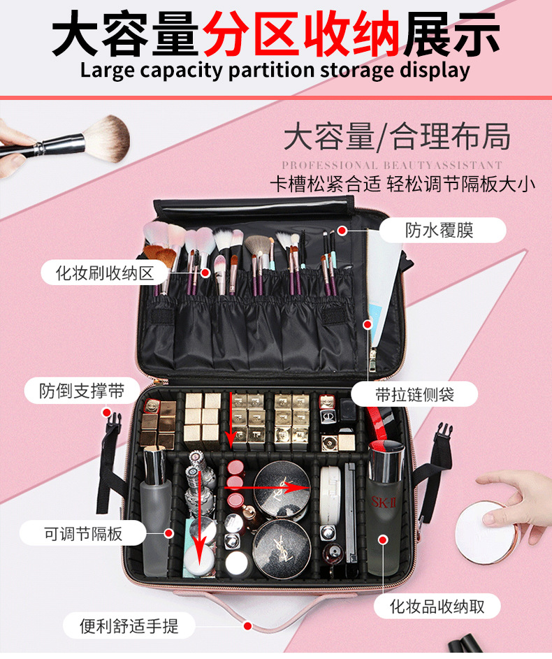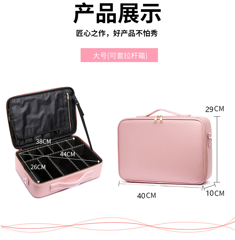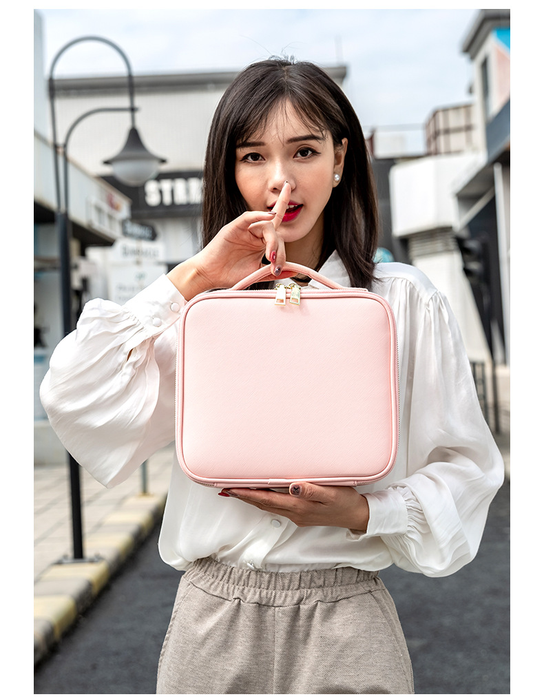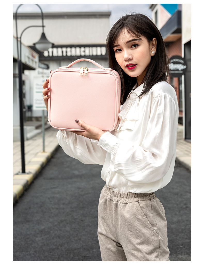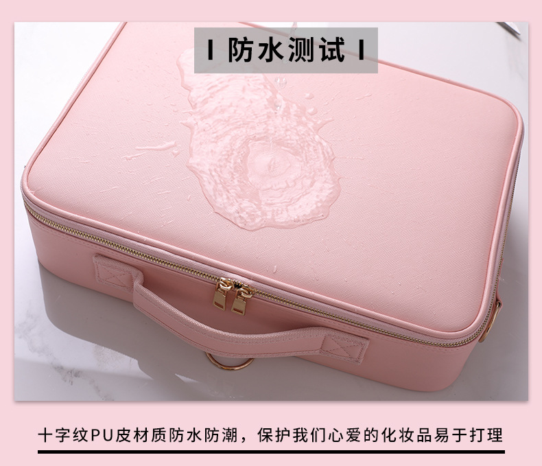 더블 레이어 여행 스토리지 파티션 화장품 가방 핑크 휴대용 방수 PU 대용량 휴대용 화장품 케이스 한국 간단