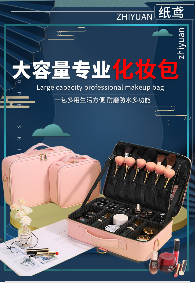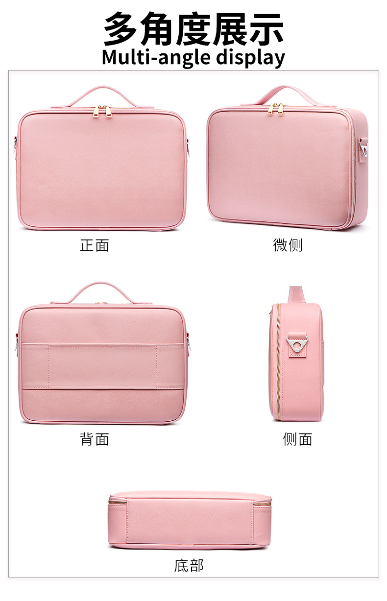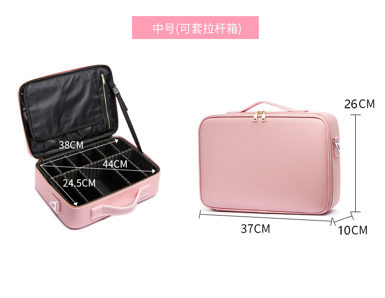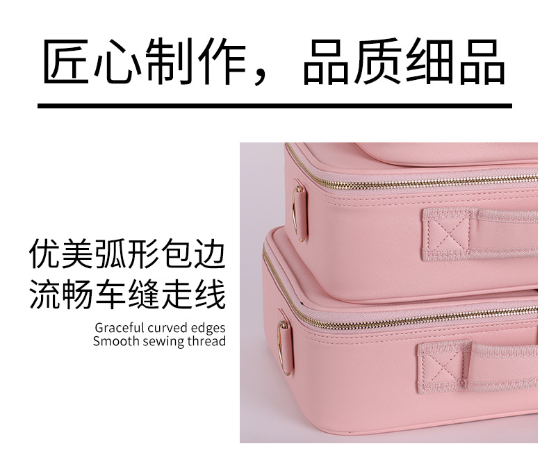 더블 레이어 여행 스토리지 파티션 화장품 가방 핑크 휴대용 방수 PU 대용량 휴대용 화장품 케이스 한국 간단
