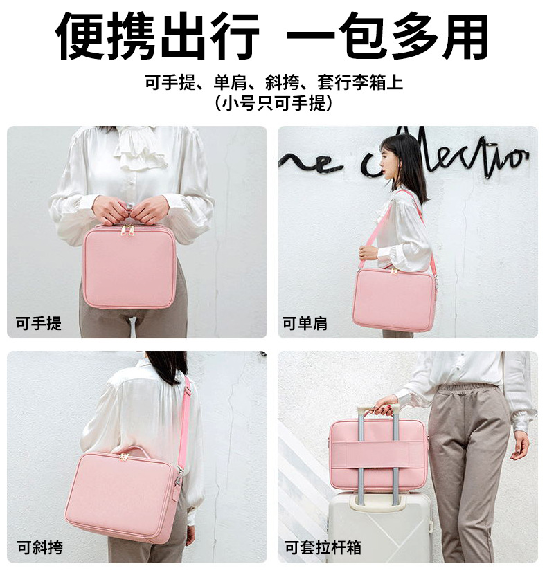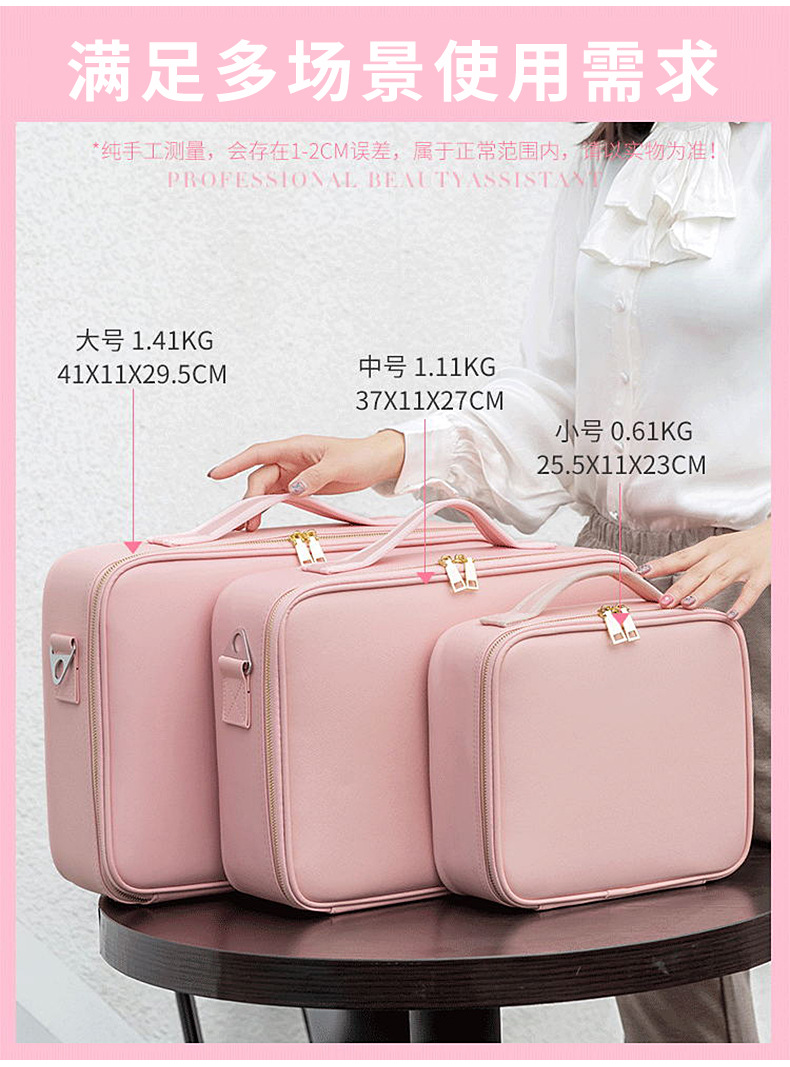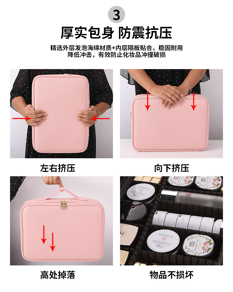 더블 레이어 여행 스토리지 파티션 화장품 가방 핑크 휴대용 방수 PU 대용량 휴대용 화장품 케이스 한국 간단스토어 가기