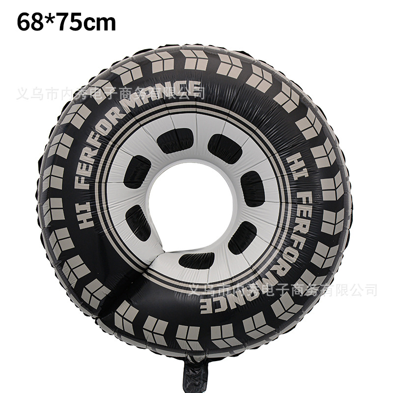 새로운 타이어 풍선 18 인치 흑백 격자 무늬 라운드 알루미늄 필름 풍선 레이싱 테마 장식 공식 랠리