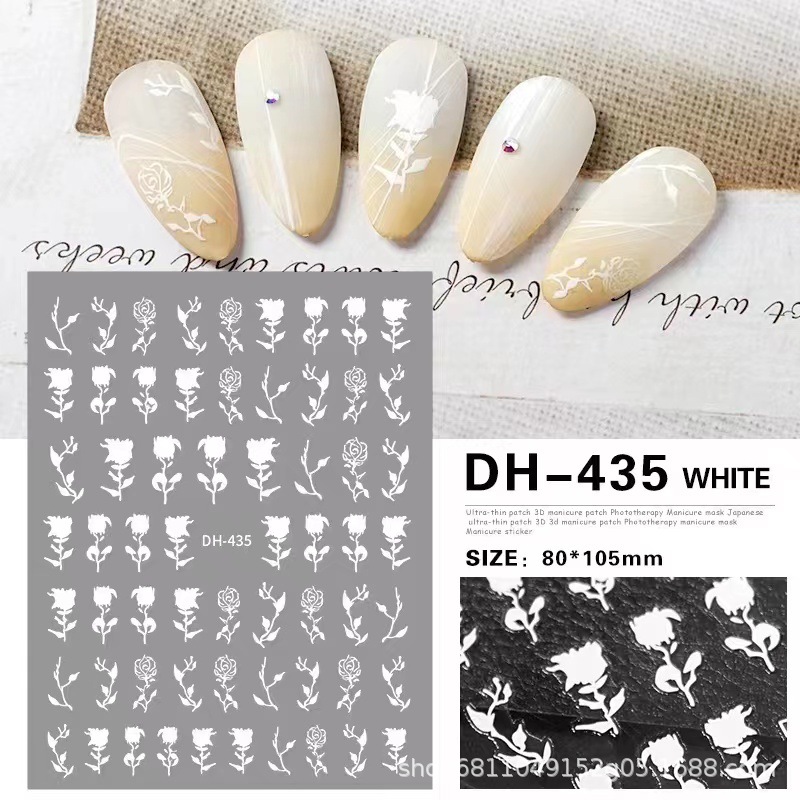 2022 네일 아트 새로운 순수한 흰색 신선한 꽃 다섯 꽃잎 꽃 화이트 장미 사랑 다시 접착제 네일 스티커 순수한 불멸의 스타일