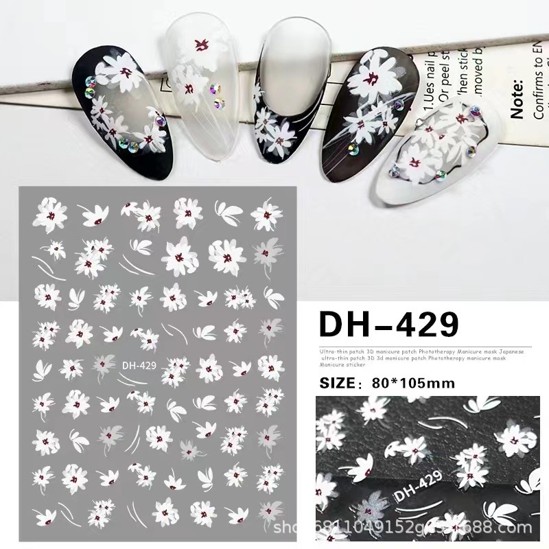 2022 네일 아트 새로운 순수한 흰색 신선한 꽃 다섯 꽃잎 꽃 화이트 장미 사랑 다시 접착제 네일 스티커 순수한 불멸의 스타일스토어 가기