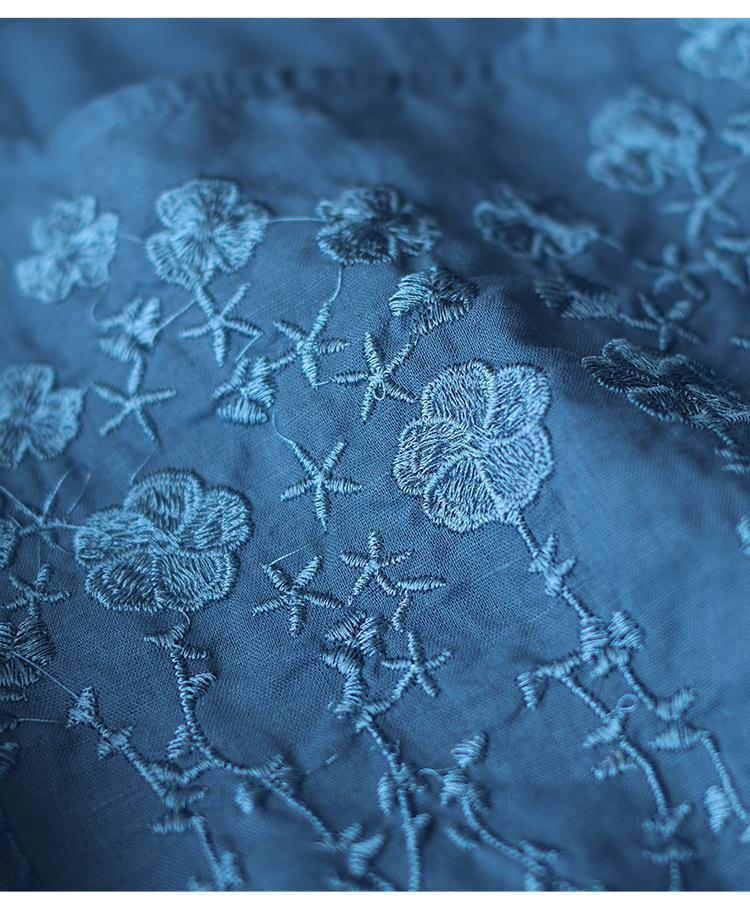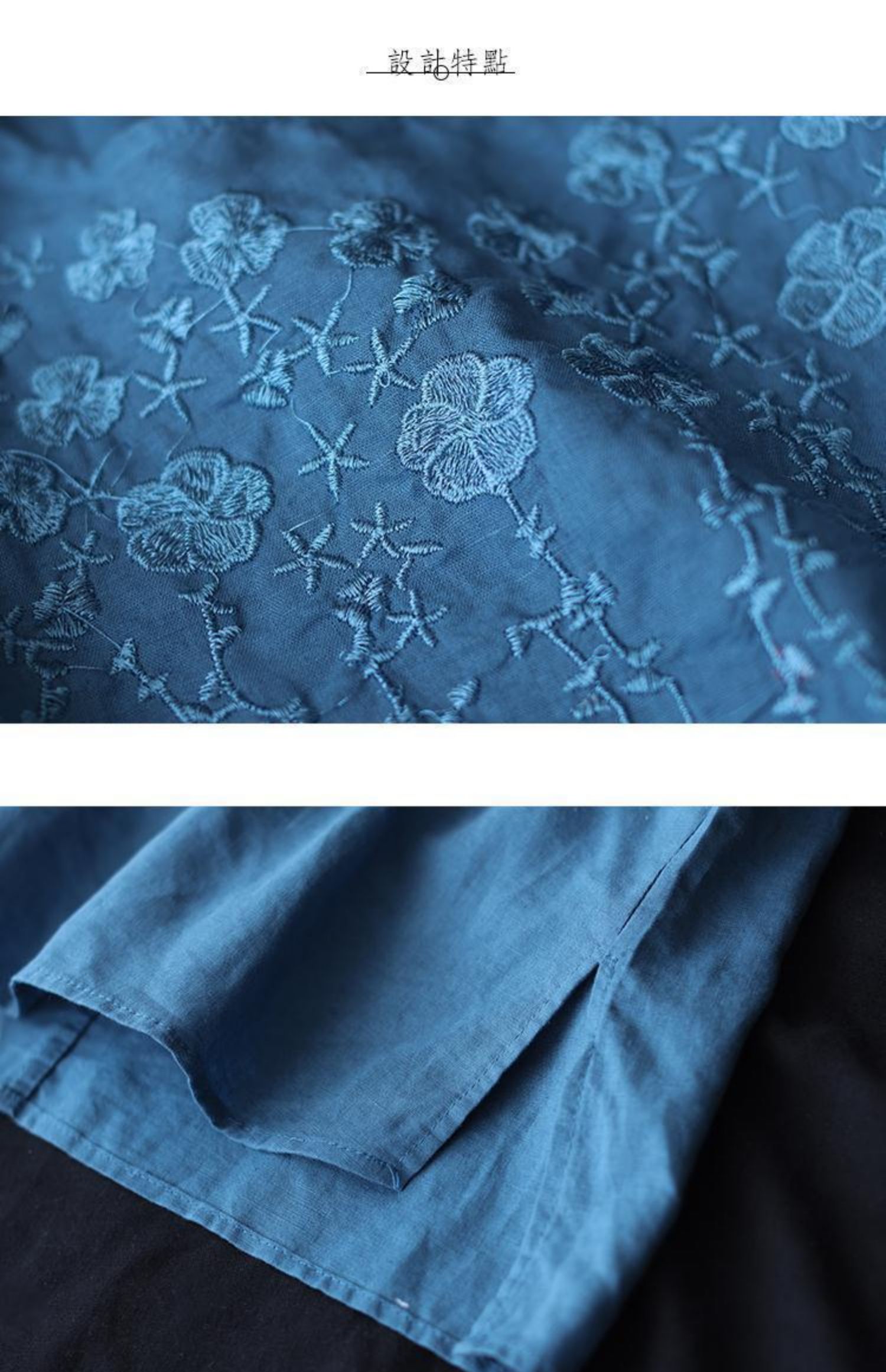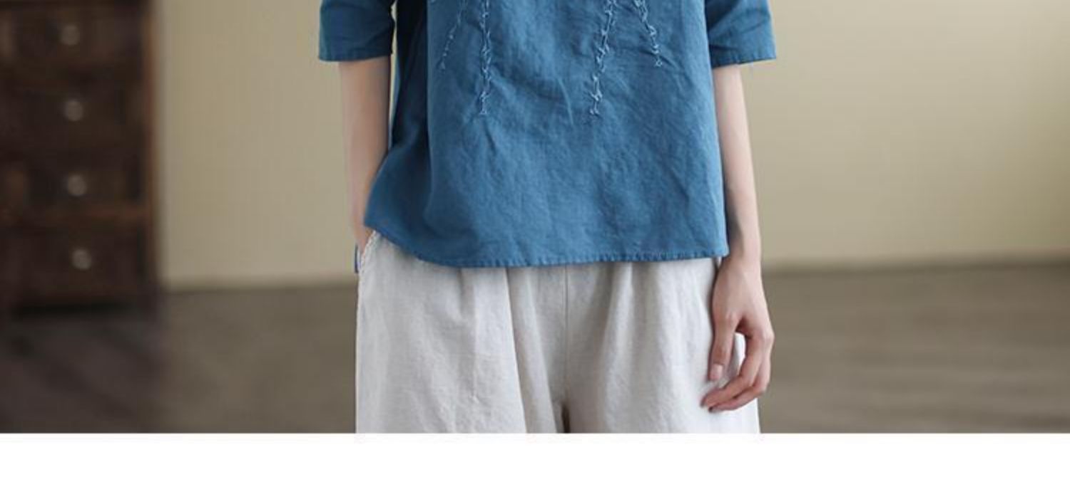 예술적 레트로 코튼 린넨 티셔츠 자수 탑 여성용 7 점 슬리브 느슨한 라운드 넥 솔리드 컬러 슬리밍 연령 감소 풀오버 셔츠스토어 가기