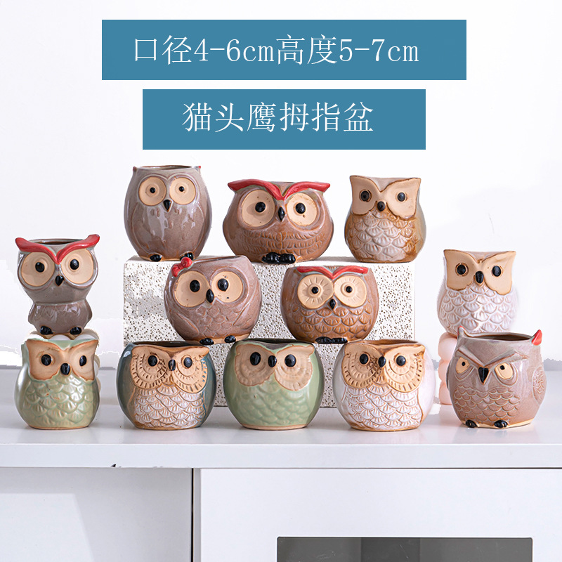 국경 간 다육 화분 올빼미 수출 세라믹 거친 도자기 엄지 화분 심기 용기 귀여운 창조적 인 맞춤형 꽃 용기스토어 가기