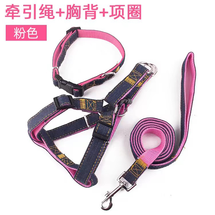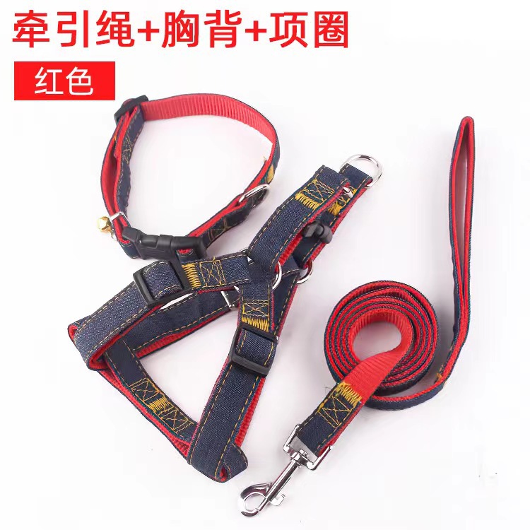 새로운 애완 동물 목줄 데님 개 목줄 대형 개 목줄 3 피스 폭발 방지 산책 개 목줄 도매