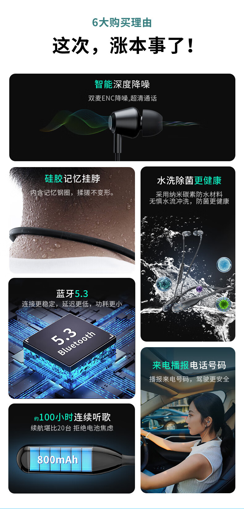 목 걸기 무선 블루투스 헤드셋 소음 감소 HIFI 수신 전화 번호 긴 내구성 낮은 지연 인 이어 스포츠 헤드셋스토어 가기