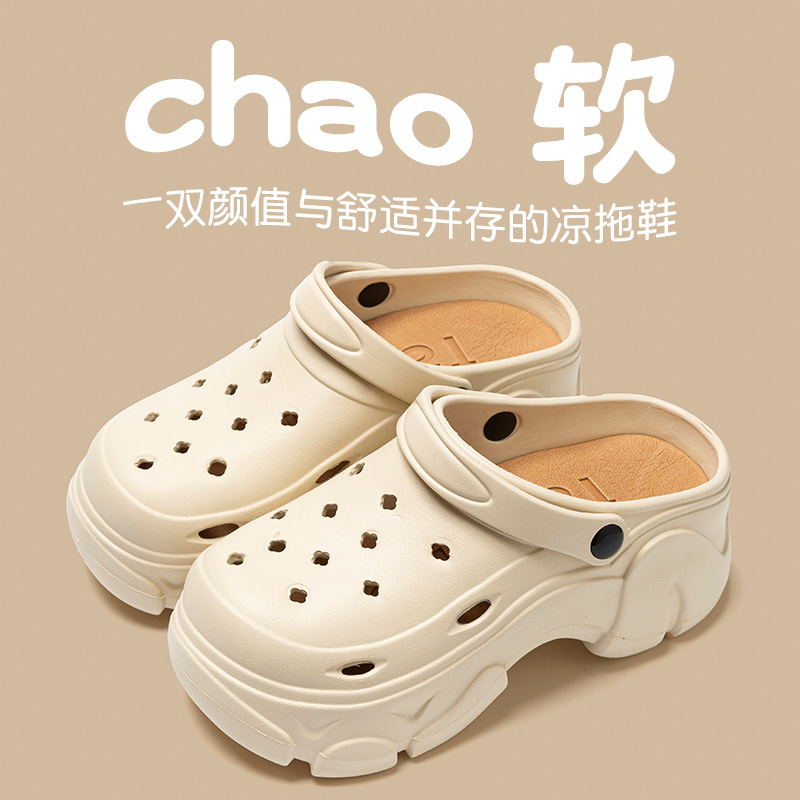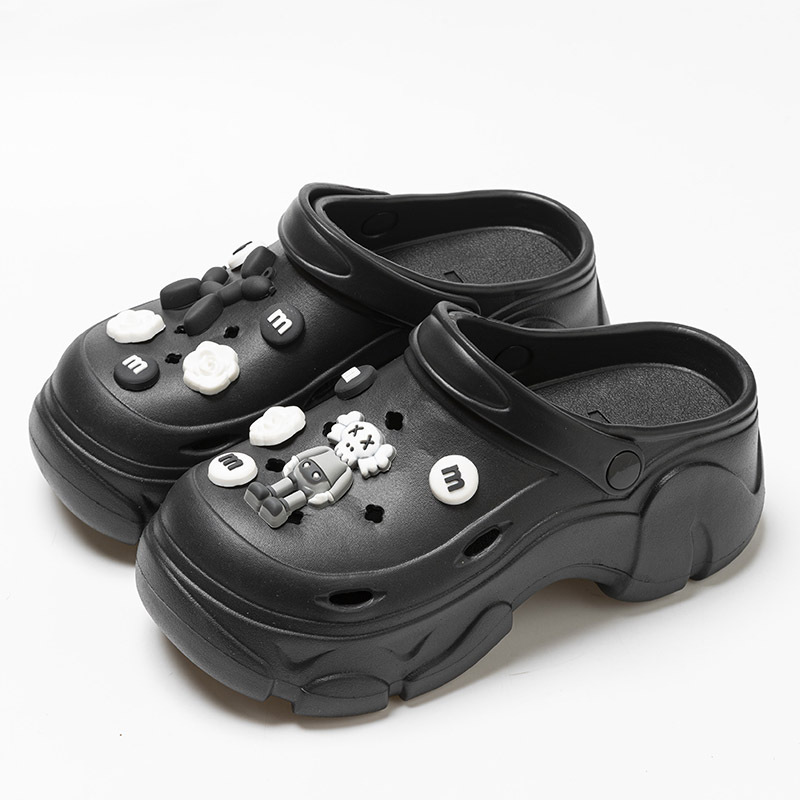 구멍 신발 두꺼운 단독 겉옷 여성의 높이 증가 여름 DIY 액세서리 정원 신발 Baotou 비치 샌들 및 슬리퍼 여성 도매
