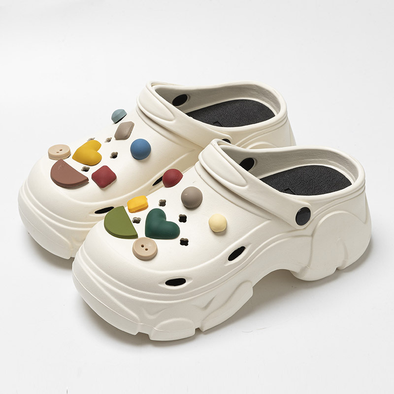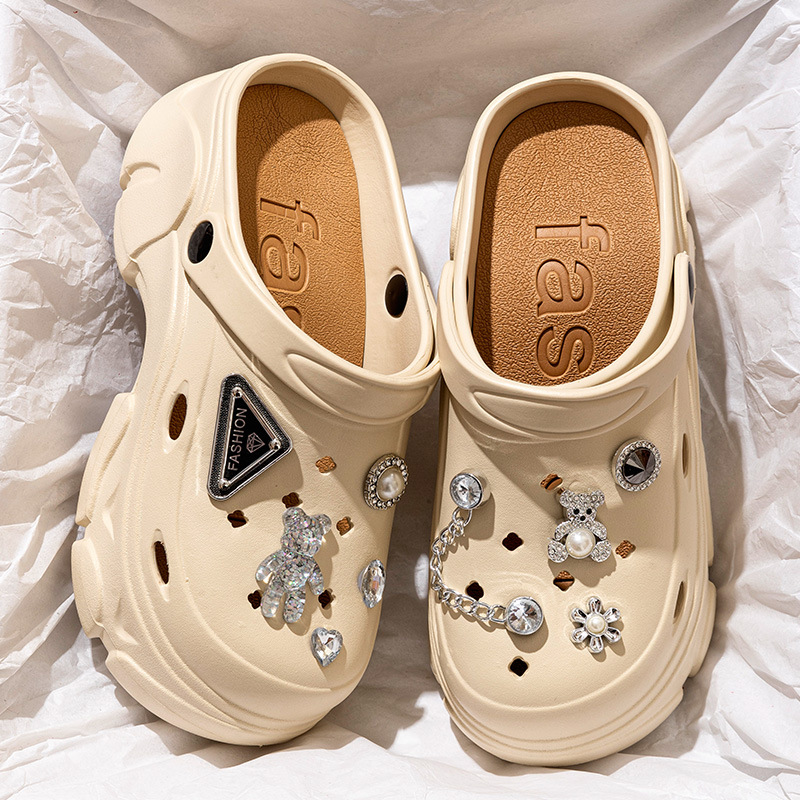 구멍 신발 두꺼운 단독 겉옷 여성의 높이 증가 여름 DIY 액세서리 정원 신발 Baotou 비치 샌들 및 슬리퍼 여성 도매스토어 가기